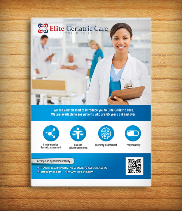alessandroevge, a Cypriot designer, created this Graphic Design flyer on 6th February, 2015 for a business in Australia. The flyer was designed for the project 'Elite geriatric care need flyer design'.