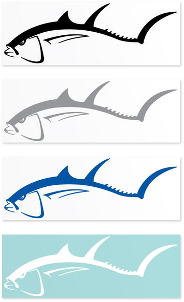 - The Text "Water Proof" and some type of Tuna Silhouette or Tuna Tail worked into the text/logo. I have attached some samples of tuna outlines/shapes