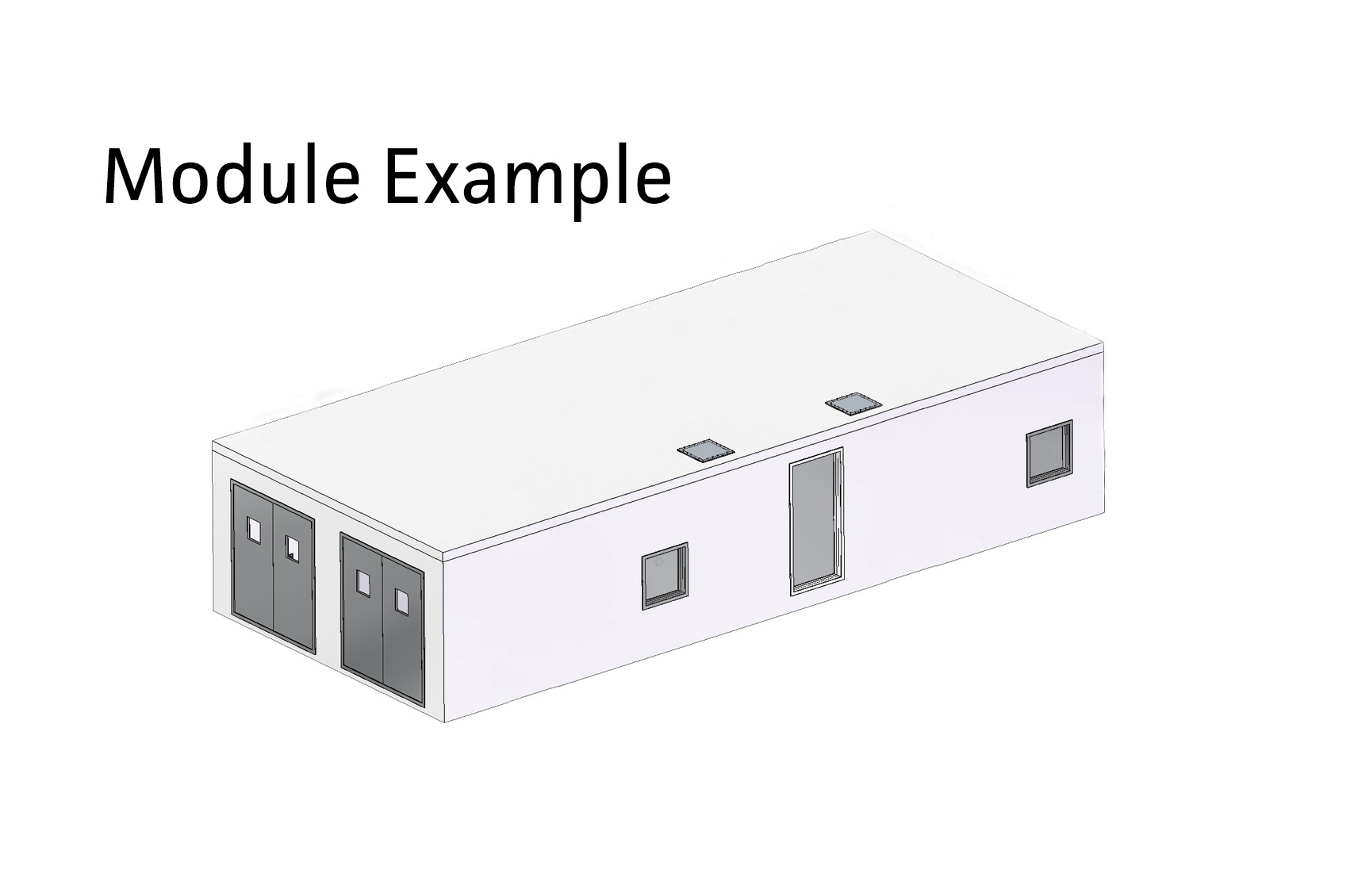 We are a laboratory manufacturer looking for an architectural style drawing or illustration showing our modules integrated into the warehouse area of an office building. The building itself should be a large single or double storied, stand-alone structure. The image should show into the building through removed walls or ceilings, revealing the office area as well as the warehouse area of the building. Inside the warehouse there will be three or four connected modules side by side. The actual modules would be about 12’x 48’ to give an idea of scale. We would also like to see details such as some trees and landscape surrounding the building.
