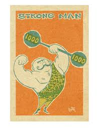 - Either a contemporary cartoon style pin-up girl doing an exercise or a stereotypical old school strongman
