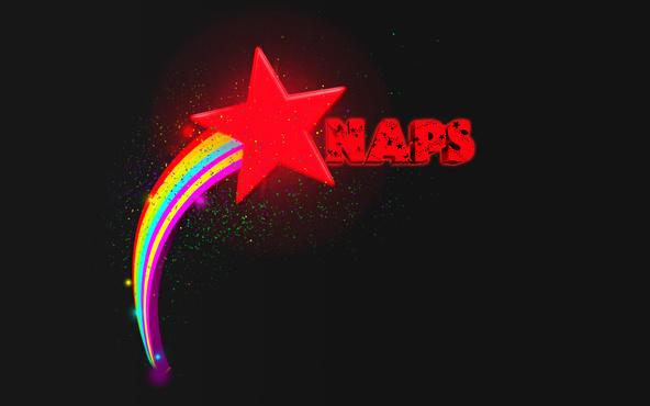 • 3D for the word NAPS. Black background. The word NAPS in red. The orientation of the word NAPS is generally as I have created in a rough image attached to this, you will see that the word is angled and has to look like it is being fired out of the front of the shooting star.