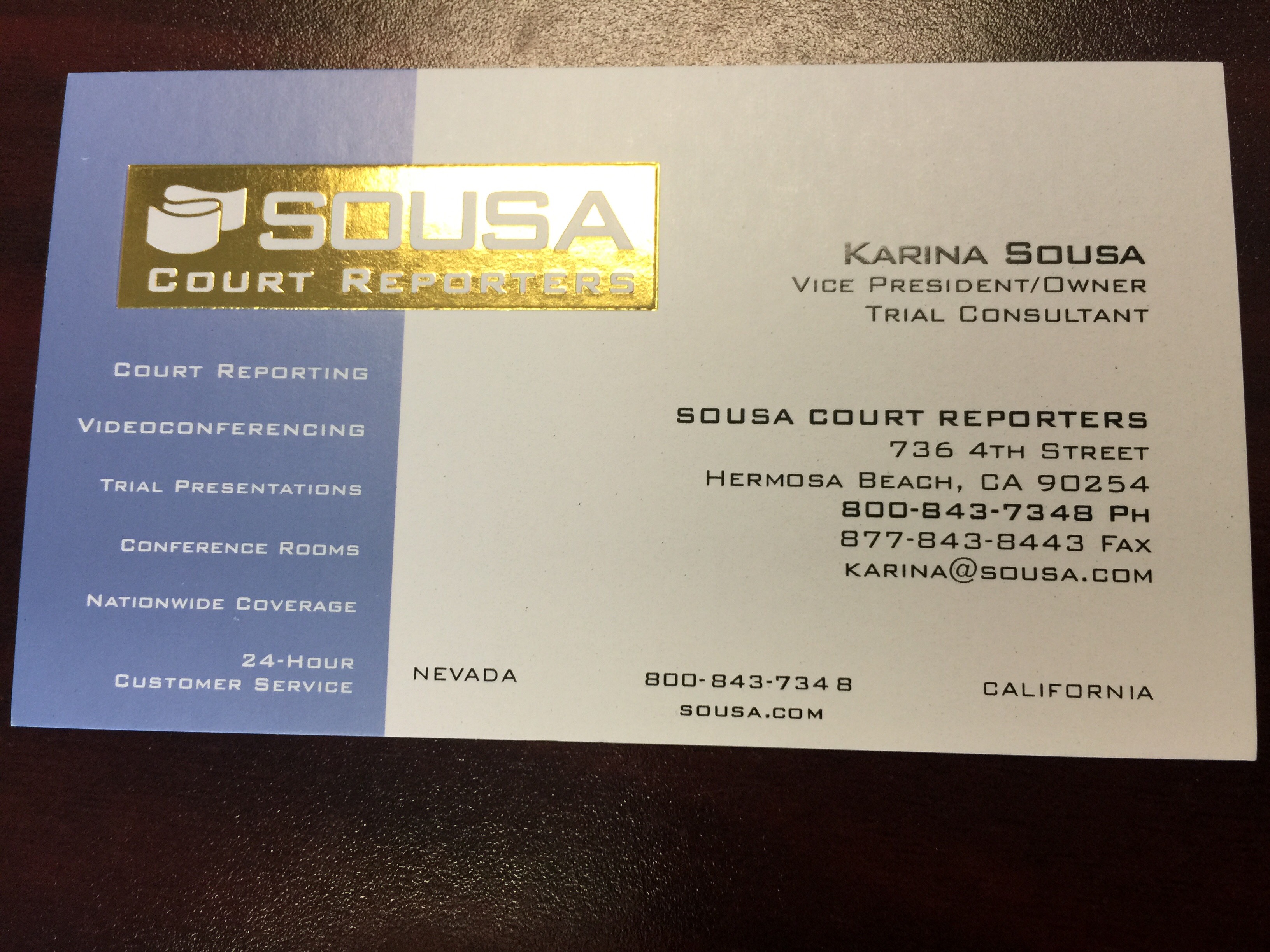 Re-design of business card for Sousa Court Reporters
