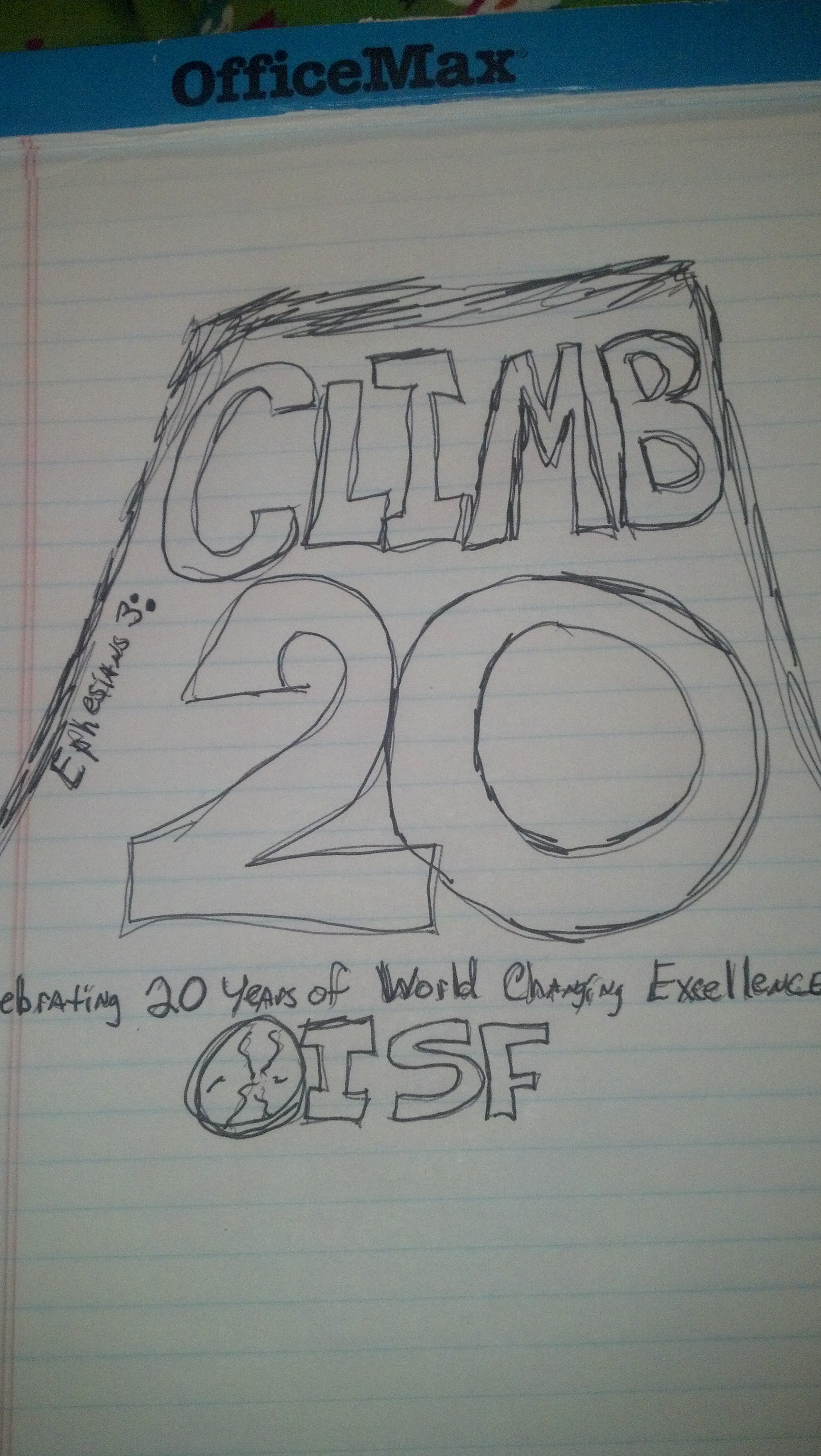 So we would like the logo to incorporate the outline of Kili, the large words Climb 20 and small on the left side Ephesians 3, and the web address which is climb20.org