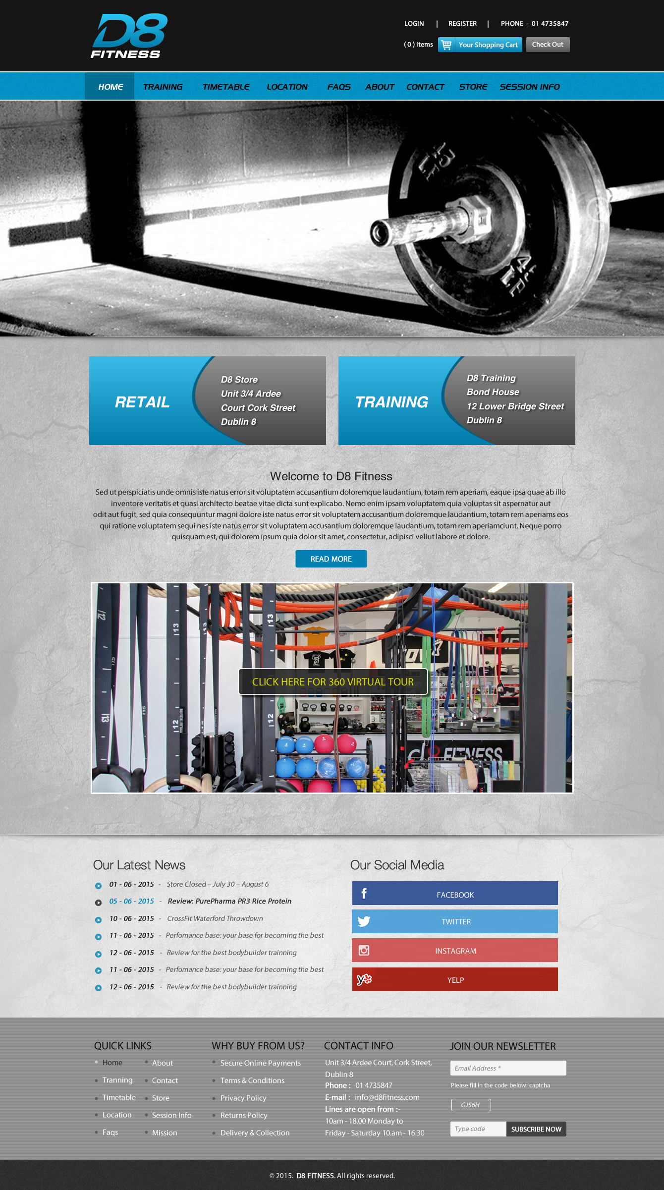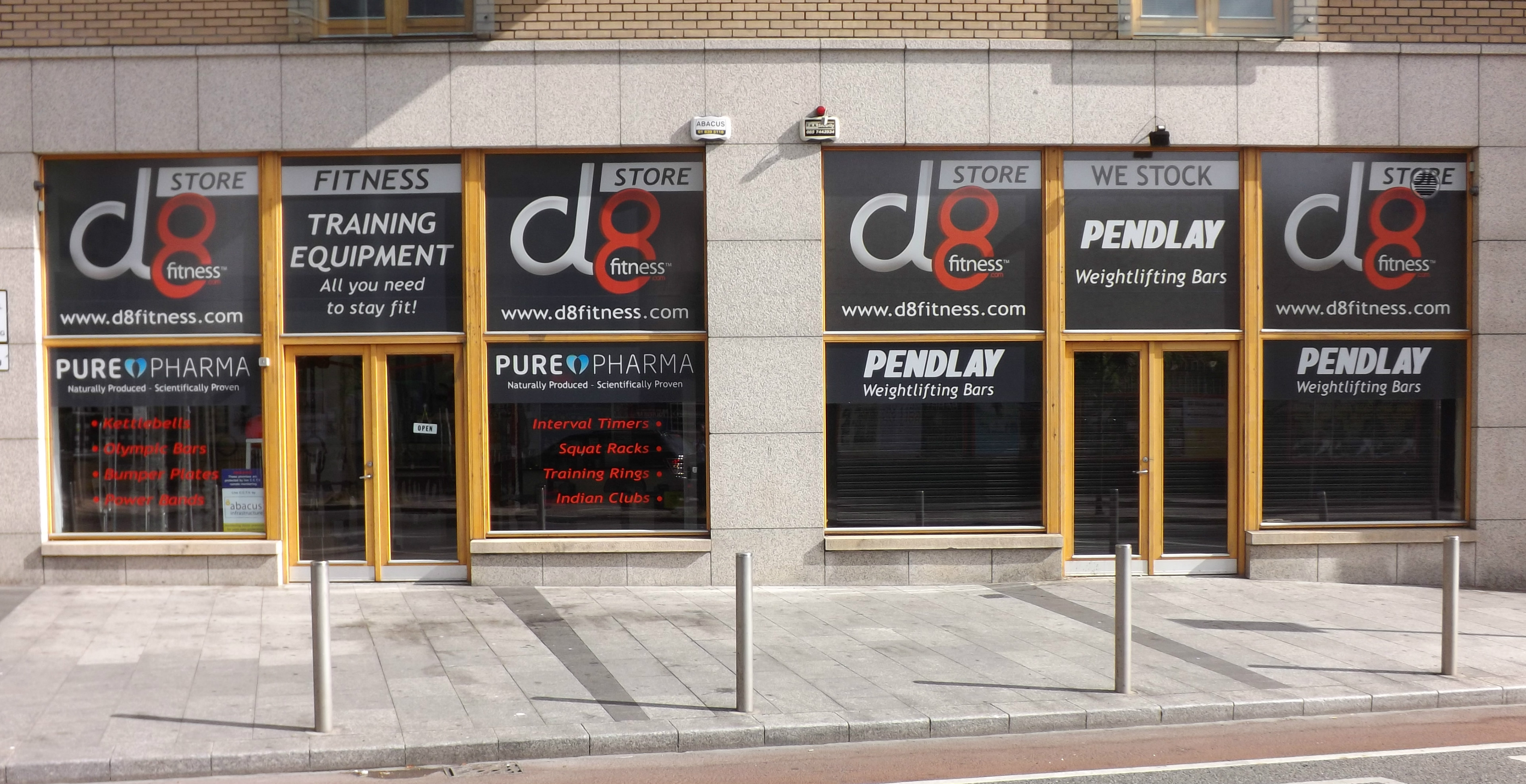 address must be shown www.d8fitness.com, Contact number 01 4735847