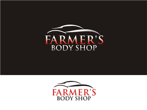 I need a design that will show well and be eye catching on a variety of colors. I need a small design on the left front chest and a large design on the back. I have enclosed my logo to give you an idea but this is not what I want on my t shirts. It needs to have FARMER'S BODYSHOP EASLEY S.C. 29640