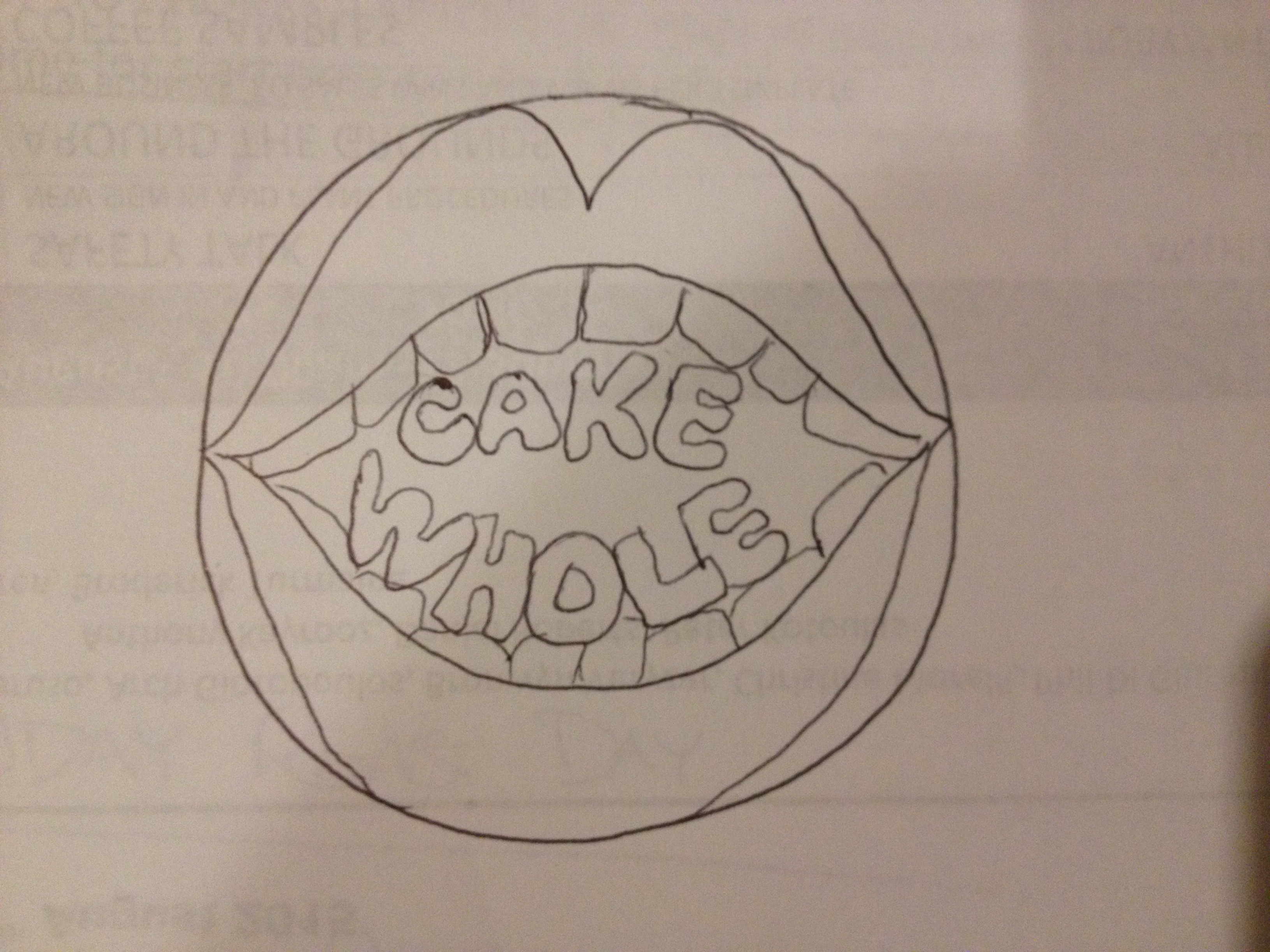 Currently an idea would be an open mouth with the words 'Cake Whole' written inside the mouth, but am open to other ideas!