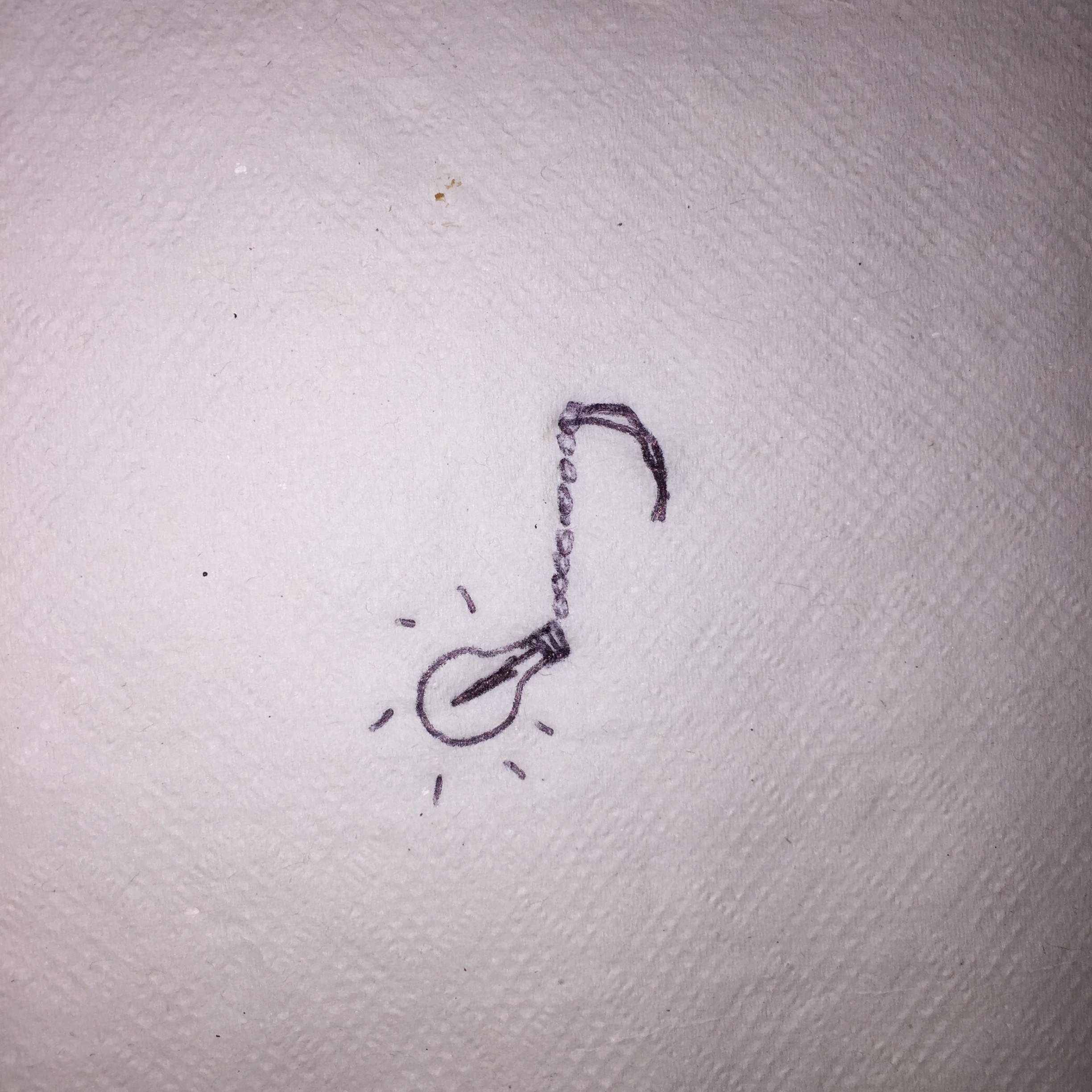 I sketched up what I thought would be a really cool design possibility. It's essentially a "light note." Feel free to play off of this or make this exactly in black and white AND/OR color: yellow bulb, grey chain, black "stem"/cord. Or just do something totally different! That's fine too. I trust you.