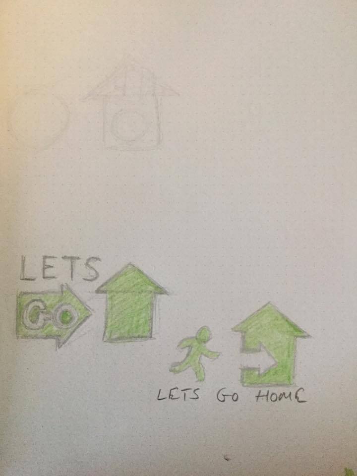 • An idea I thought of is similar to a fire exit sign where you have a person running into a door of a house. The person would be running towards an arrow that looks like the doorway into the house - trying to incorporate the actions of Lets Go Home. See file attached.