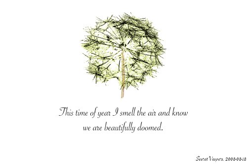 - concept I really like is of a dandelion blowing in the wind (themes = herb, wistful, dissemination of information, free and easy)