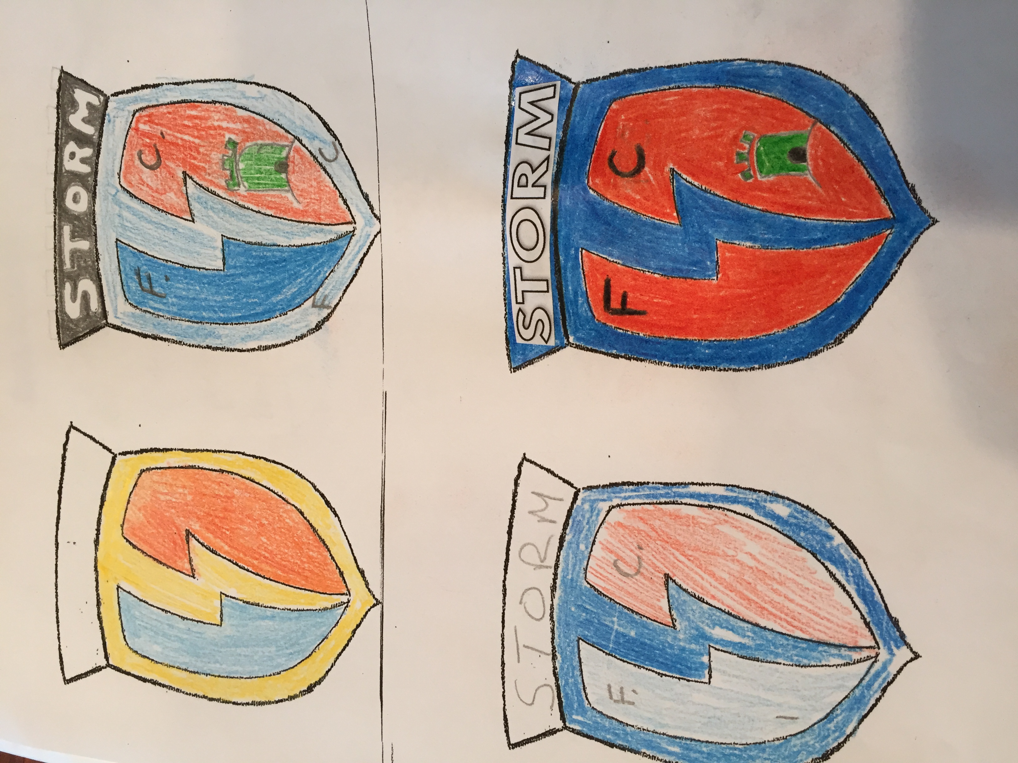 I need a badge design for a soccer uniform. See attachment for my vision. Team name Storm. I would like some Orange like the Dutch national soccer team but not to overwhelm the design as well as a small green castle. A Green Castle is in remembrance of the former team name and green was the color. In the attachment you will see a lightening bolt.