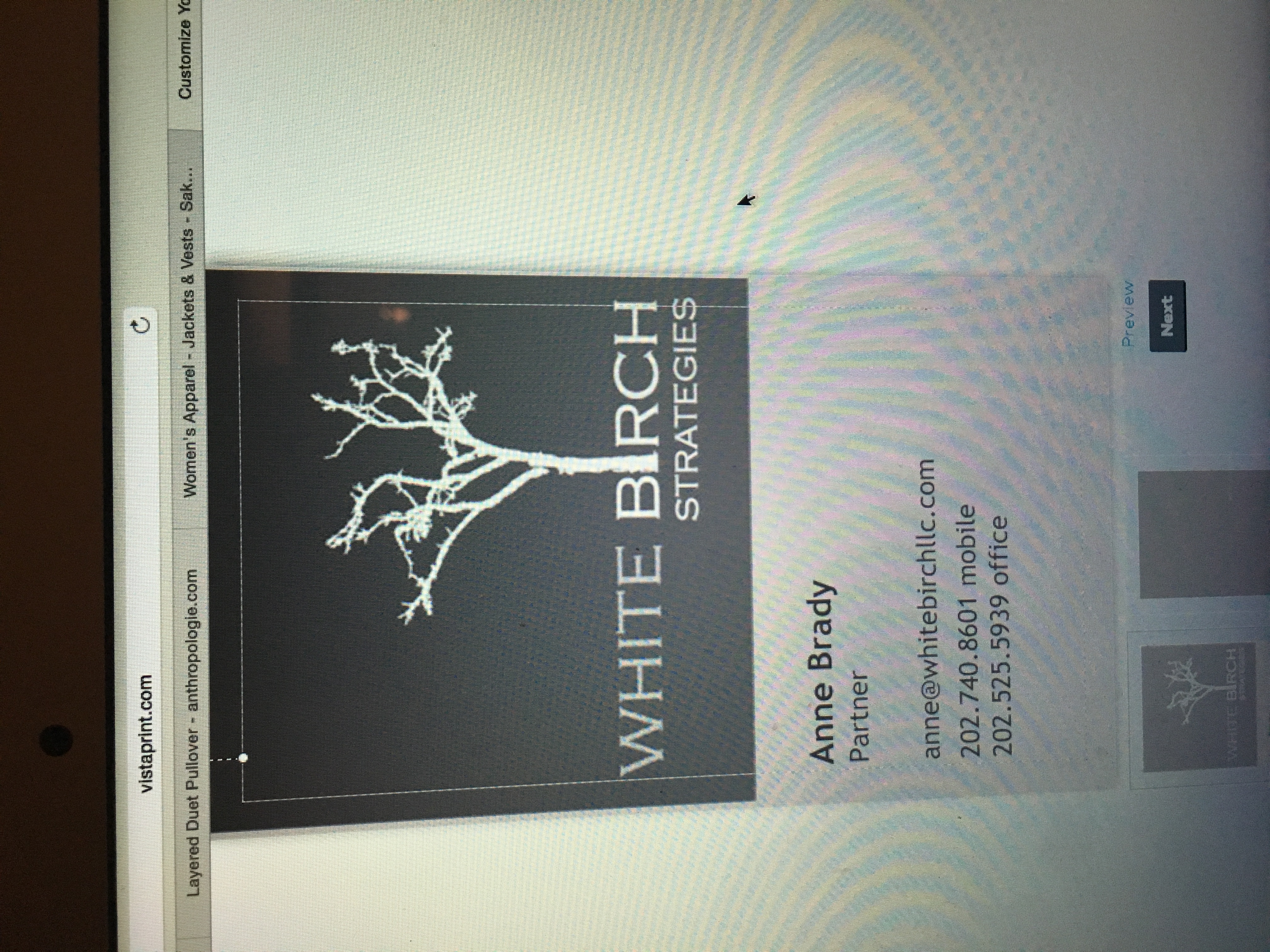 A vertical business card request- a medium & light gray with whitebirch tree logo (logo is attached)