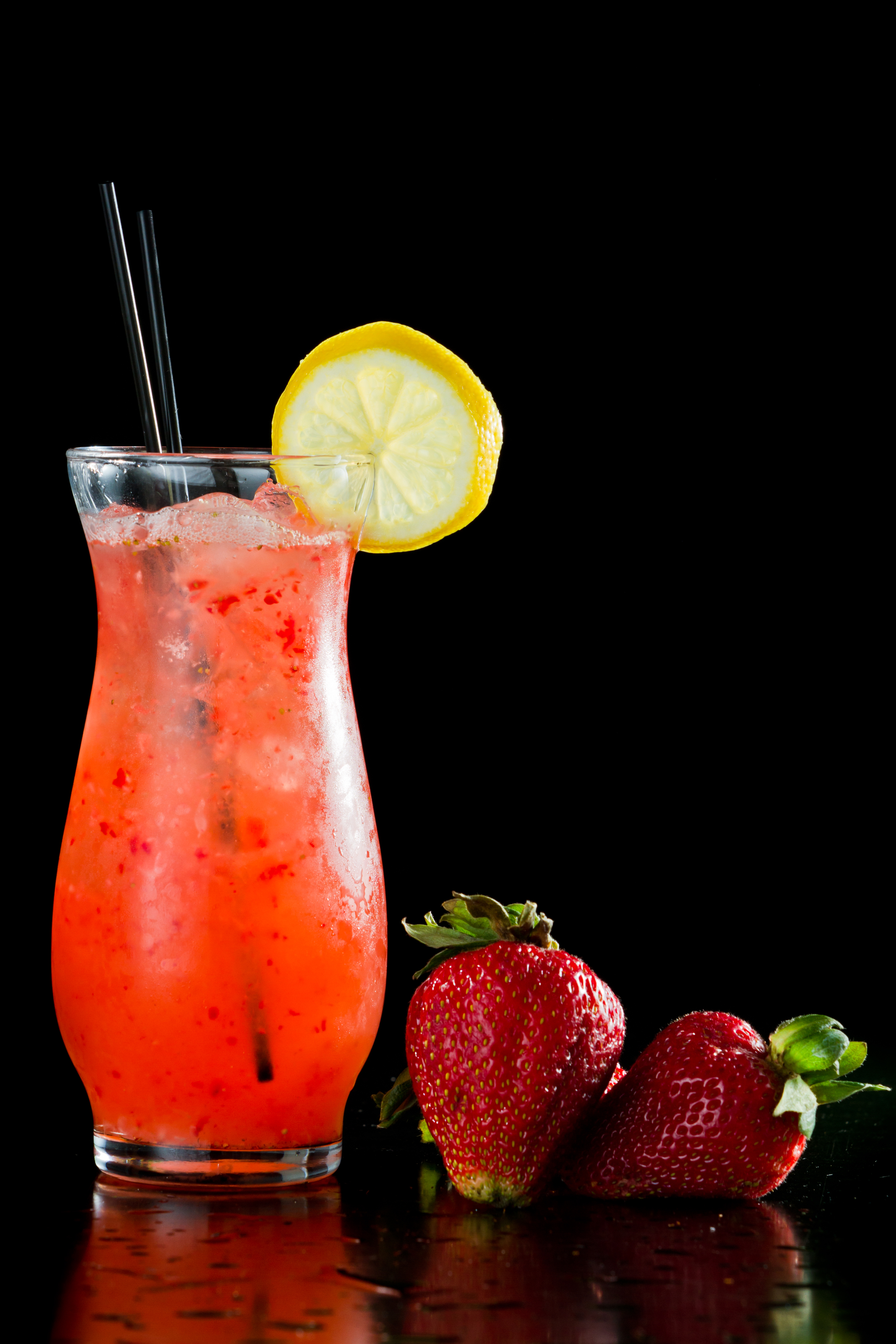 The glass of strawberry lemonade should contain lemonade with pieces of strawberries inside the lemonade. I have attached a file titled "strawberry lemonade picture" for your reference. You can use that image so long as you are able to completely remove the black background as well as the black at the top and bottom of the glass.