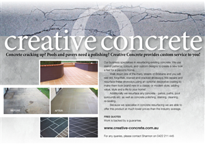 Hi :) URGENTLY REQUIRED PLEASE We need a new and revised upbeat flyer design please….I feel like our current ones are dull and flat and don't really relate to our logo etc in any way…. the current flyer incorporates none of our logo and colour schemes associated with our branding….also they don't really have and graphics to catch peoples eye I want the new ones to be double sided and maybe thinking more in depth info about the services we provide but completely happy to go with your professional opinion :) The flyers will be printed in DL card size and mainly get slipped under the doors of new houses close to handover dateI have attached some images of other peoples flyer designs that i like the concept of if that helpsI have also attached a few images to illustrate the scope of works we conduct Im happy to use professional generic marketing images if it makes the flyers more appealing We are also on Facebook so you can get an idea of our business ( I'm also wanting to put the Facebook details on the front of the flyer somehow) please email me at elitecrete@live.com.au to discuss if requiredA bulrb from hipages.com- Highly professional and reliable concreters and landscapers with over 15 years of experience in the trade.About Elitecrete ConstructionsA reputable and established business in operation for over 10 years. We are backed by over 15 years of trade industry experience, making us your best choice for any concreting or landscaping work that you might require. We are passionate about what we do and this clearly shows through in the work we produce. We are also proud members of the Master Builders Association.With us you get a high quality result that stands the test of time; we have superior attention to detail, we don't take shortcuts, and we always ensure that our concreting work is neat, tidy and suited to your home and its surrounds. We treat every job as if it is our own. We are focused on providing quality workmanship, outstanding service and value for your money with the highest level of customer service and customer satisfaction.Since every job is unique, we cater to different needs and tastes by offering a wide variety of options to choose from.Our servicesWe focus on both commercial and residential work. With us, no job is too big or too small.Our services include, but are not limited to:General concretingConcreting for new homes or renovationsConcreting for new home packagesFootpathsOutdoor patiosConcrete, timber and stone retaining wallsExcavation, post hole digging and earth moving needsExposed aggregate specialistsColour cove specialistsPool surroundsLandscapingLawn and turf layingQuotes straight from plansConcrete removalLandscape design and constructionProject managementWe are always happy to discuss your plans and ideas. Get in touch with us and have a chat about what the job is, what needs to be done and your preferred timeframe and we will work in conjunction with you to get you the results you desire. We will always try to work within your budget where possible. All our prices are based on current market rates. We are also happy to assist our clients in getting other work done, since we have great working relationships with our suppliers and a range of different trades. We really are a one stop shop.We usually charge per job and will always take everything into consideration to give you a fair and accurate quote.Our current hours are 6.30am - 8.30pm 7 days per week. We are very flexible with our schedule. https://www.facebook.com/Elitecrete-Constructions-Pty-Ltd-…/