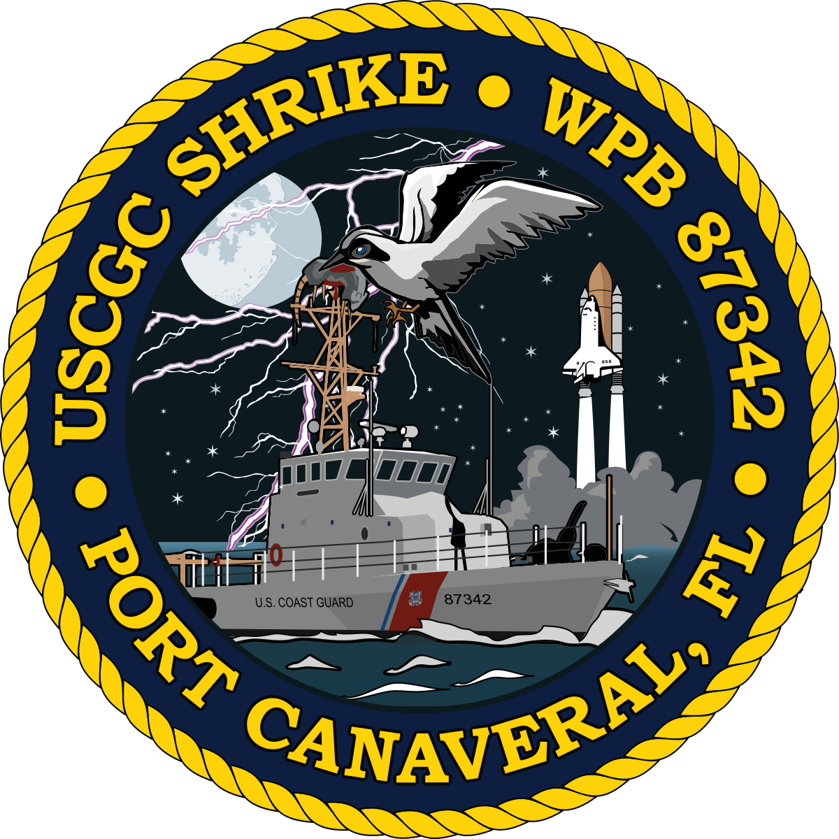 For reference, I've included the crests of two of the ships with which I work (see "Diamondback.jpg" and "Shrike.png"). Other examples of ships' crests are here: https://commons.wikimedia.org/wiki/Category:Emblems_of_United_States_Coast_Guard_cutters
