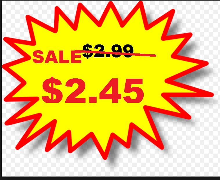 Sales Bubble: $2.99 (red line through it crossing price out)