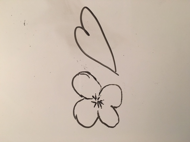 - White Violet Flower, throwing a shadow forming a heart