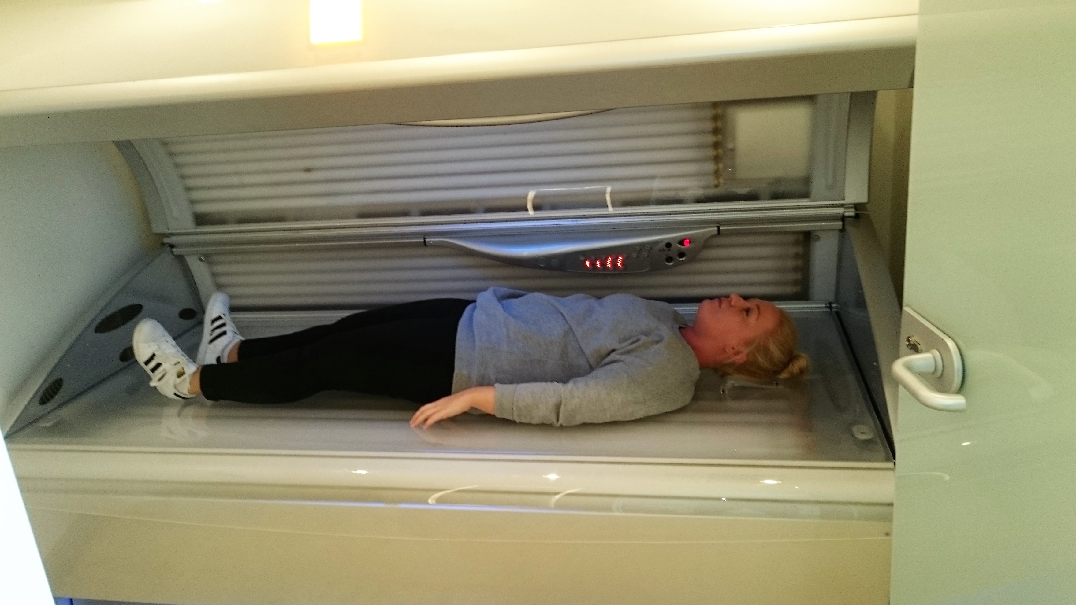Biometric automated tanning salon shop window poster