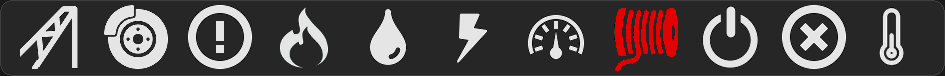 3 different colours to visualise diferent operating states, dark grey/nearly black, yellow, red. The 11 different icons represent;