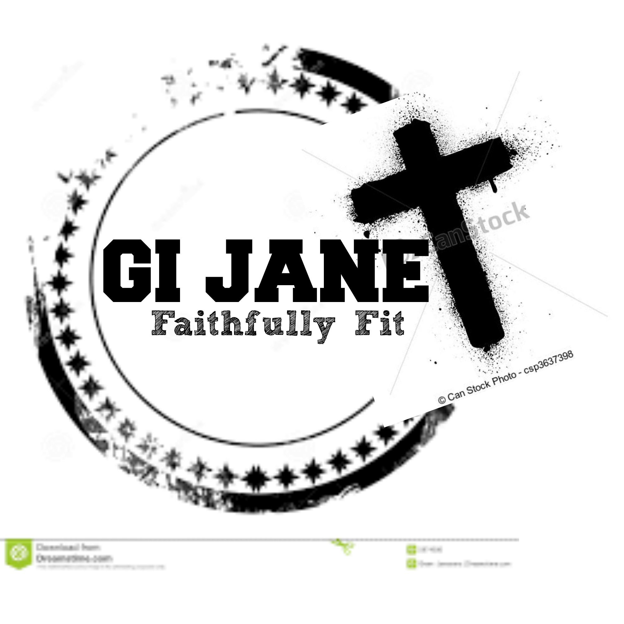 - Must have my name in it! GI JANE - would like that to stand out & be larger, then "Faithfully Fit" be smaller. A cross must also be incorporated somewhere! Must be hardcore & strong!
