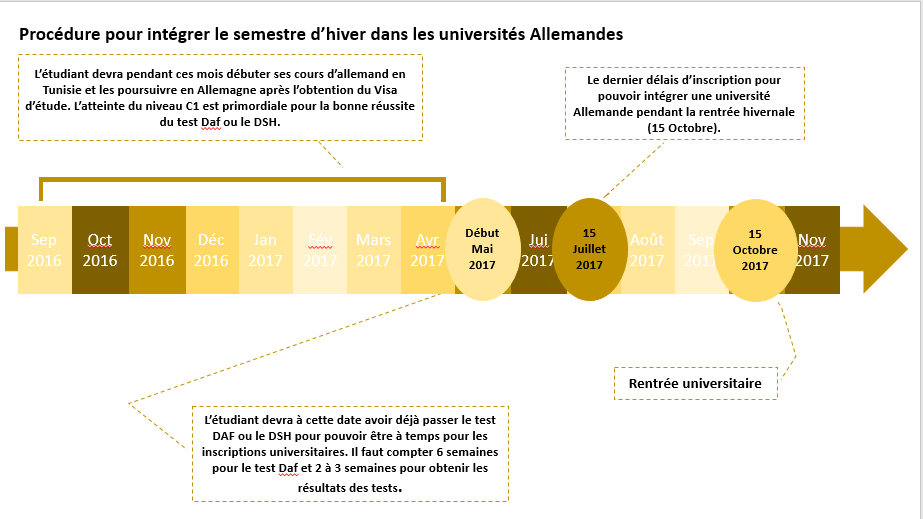 The first paragraph (up on the left in my proposition) : L’étudiant devra pendant ces mois débuter ses cours d’allemand en Tunisie et les poursuivre en Allemagne après l’obtention du Visa d’étude. L’atteinte du niveau C1 est primordiale pour la bonne réussite du test Daf ou le DSH.