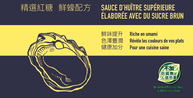 We need to create a flyer to promote a new product (Chinese premium cooking sauce) in two languages (French/Chinese).