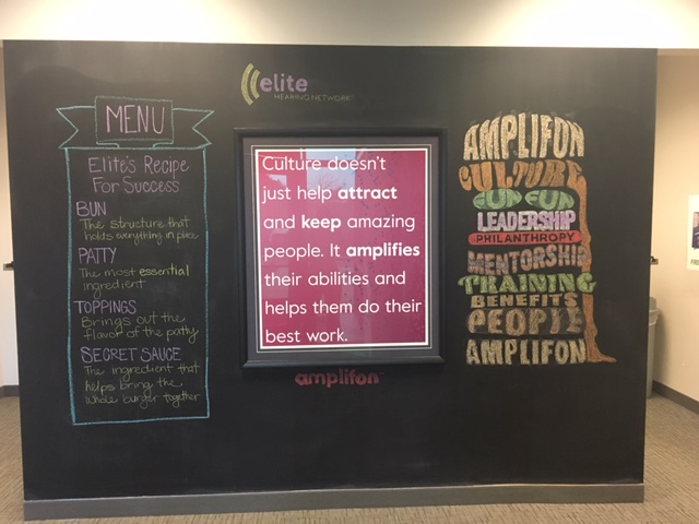 We need an illustration for our new chalkboard wall at Amplifon headquarters. This is part of an internal competition between departments/divisions. The goal is to demonstrate how our team members are fulfilling the company's mission - "everyone has the right to hear the sounds of life." The winner will be chosen based on thematic creativity and execution.