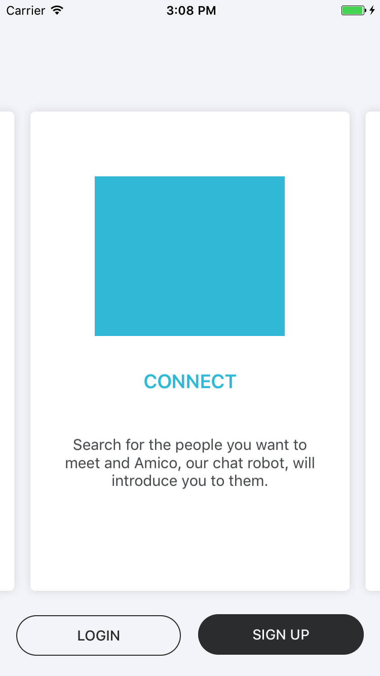 The first vector illustration should communicate people connecting. The title on this screen will be “Connect” and the text will be “Search for the people you’d like to meet and our chat robot, will introduce you to them”