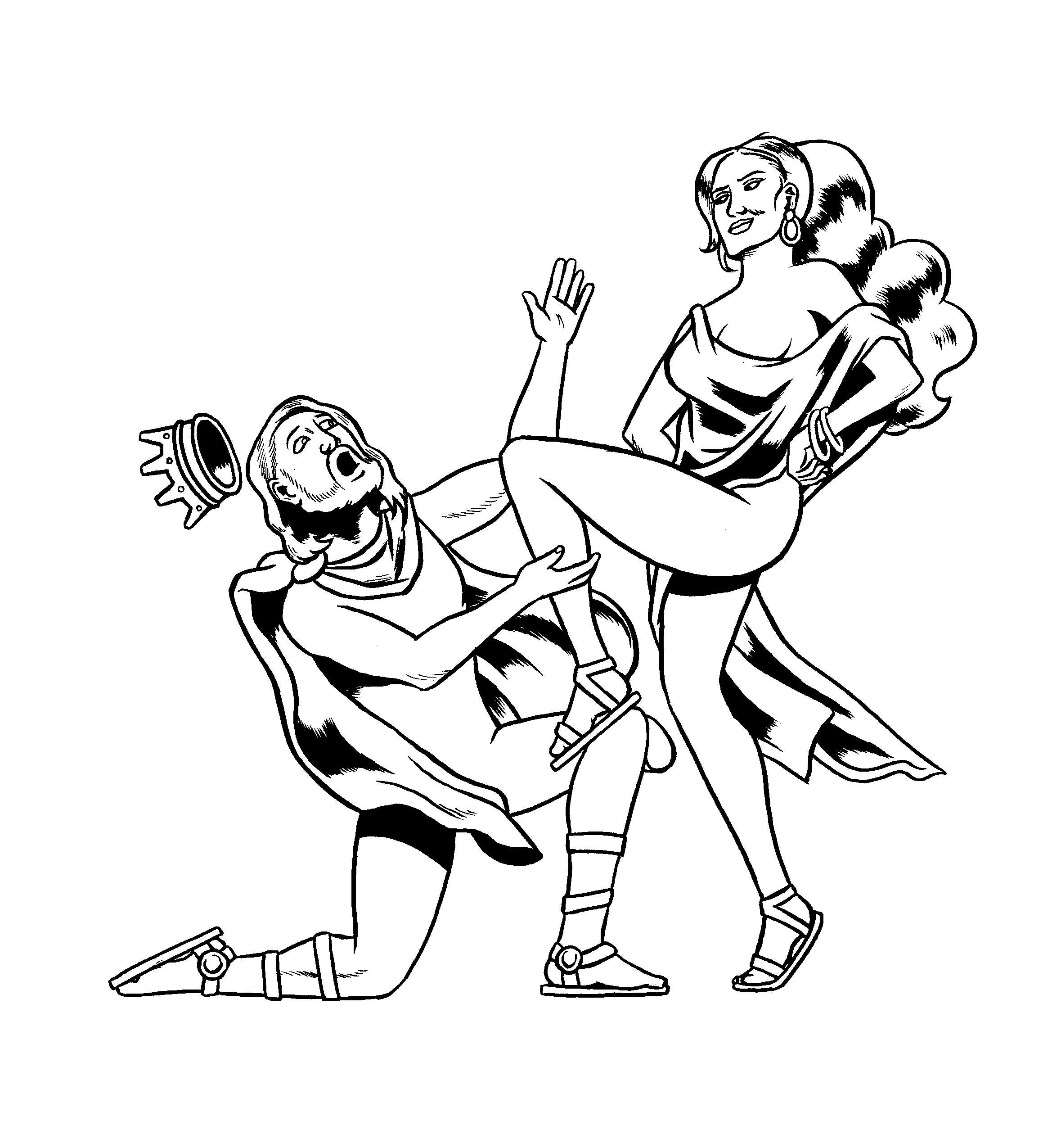 • As in the attachment, the king is on bended knee and was about to reach out and touch her thighs.