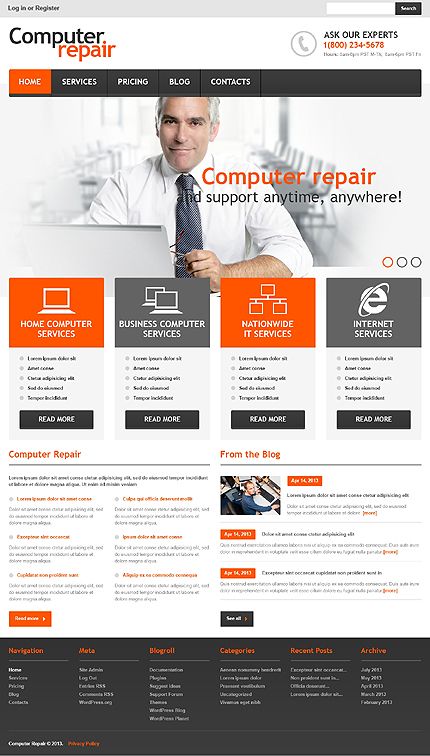 Its important to us that the design is very explanatory, the customer should easily be able to figure out that we provide computer support right away ... I like one page responsive type designs as well without a bunch of menu items