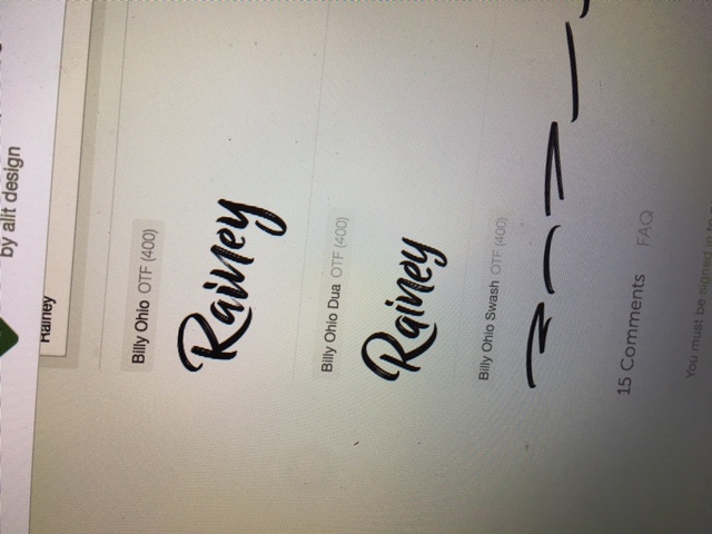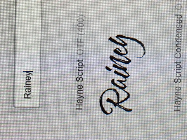 - We'd like the name "Rainey" to be in a font close to fonts like :Billy Ohio, The Redlight stylistic, Authenia, Historia and Hayne. These are all handwritten script like fonts with very noticeable detail in the letter "R" and the letter "Y" in the name Rainey. As for the words Real Estate we are looking for something in all caps that is much bolder and easy to read and flows well with the font that Rainey is in.