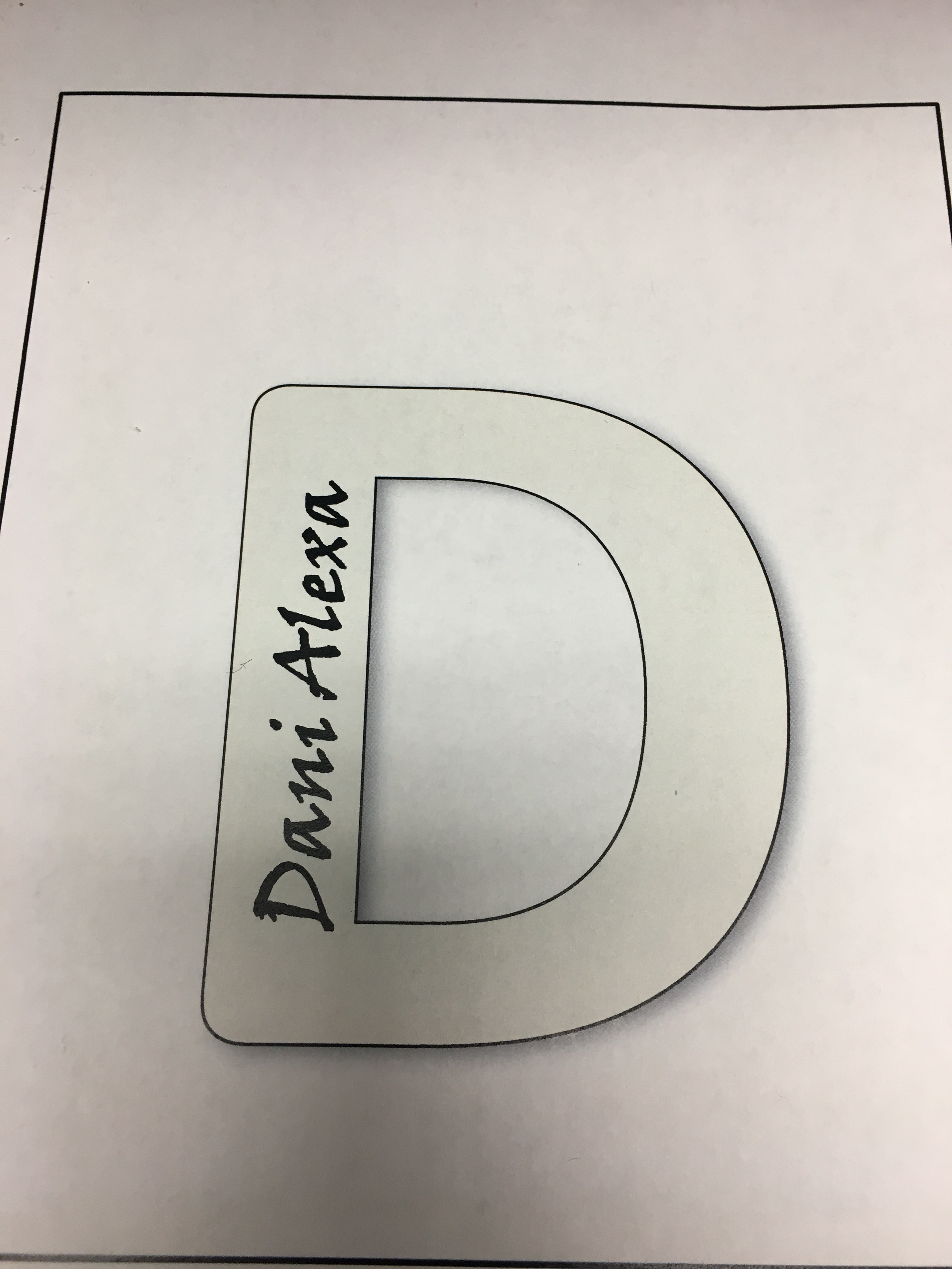 Large D with Dani Alexa on the inside of the D
