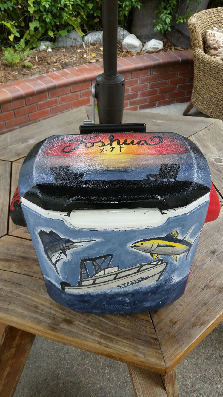 - Other photo is our daughter's artwork on a cooler she made (for father's day gift)...might be nice and fun to incorporate daughter's artwork/inspiration into logo...but not sure if it looks to busy