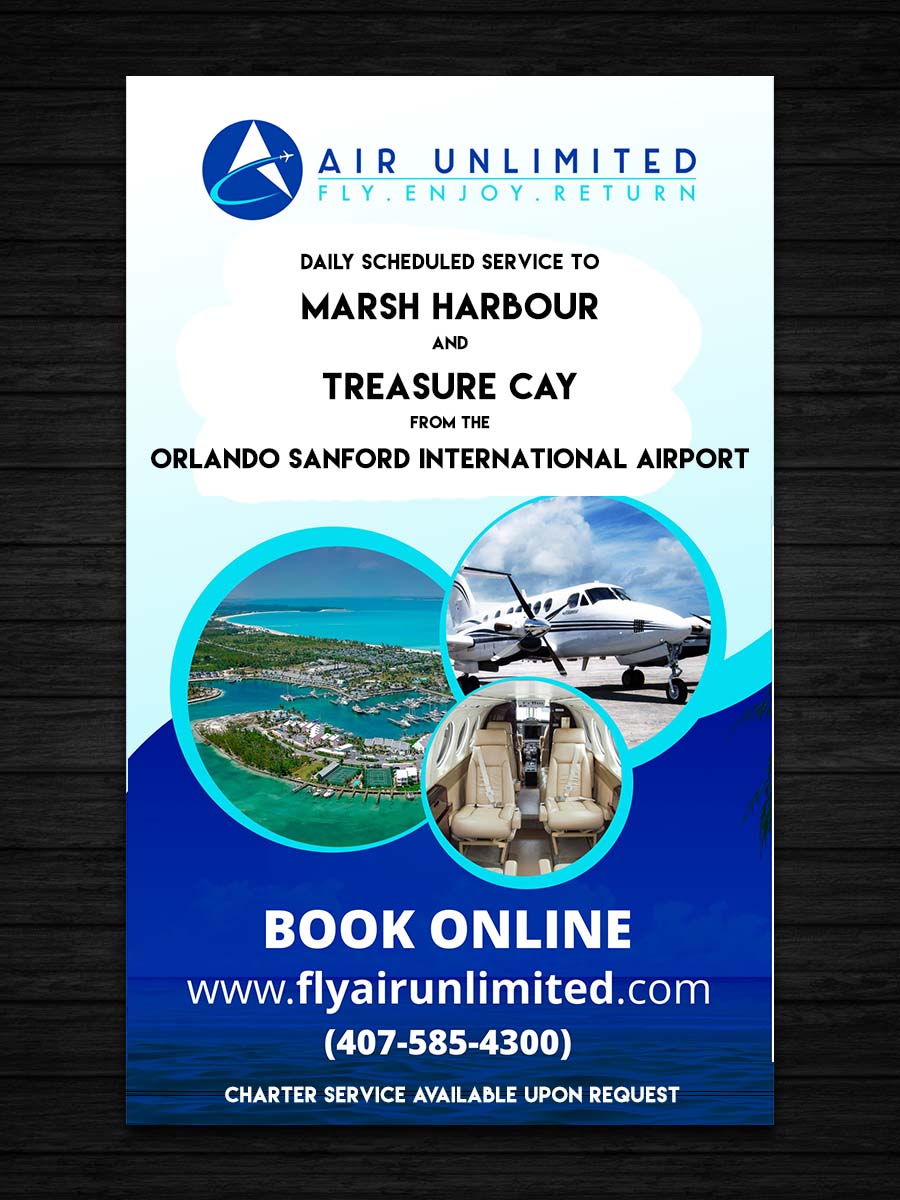 - Mentions of scheduled daily service (7 days a week) and destinations (Marsh Harbour & Treasure Cay). operating out of Orlando Sanford International airport.