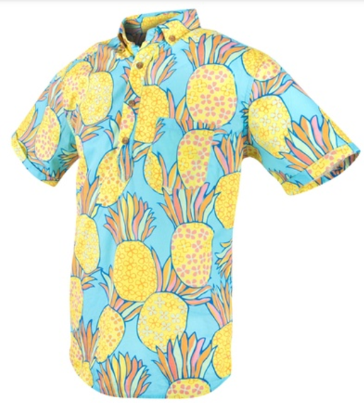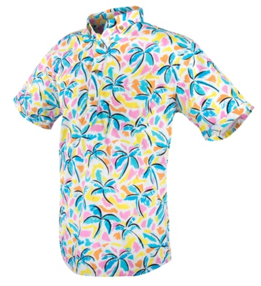 A funky fresh pattern to be put onto a button-up t-shirt and matching pair of shorts to create a bright summer vibe. Please look at attached images for other designs that we've found online that we like.