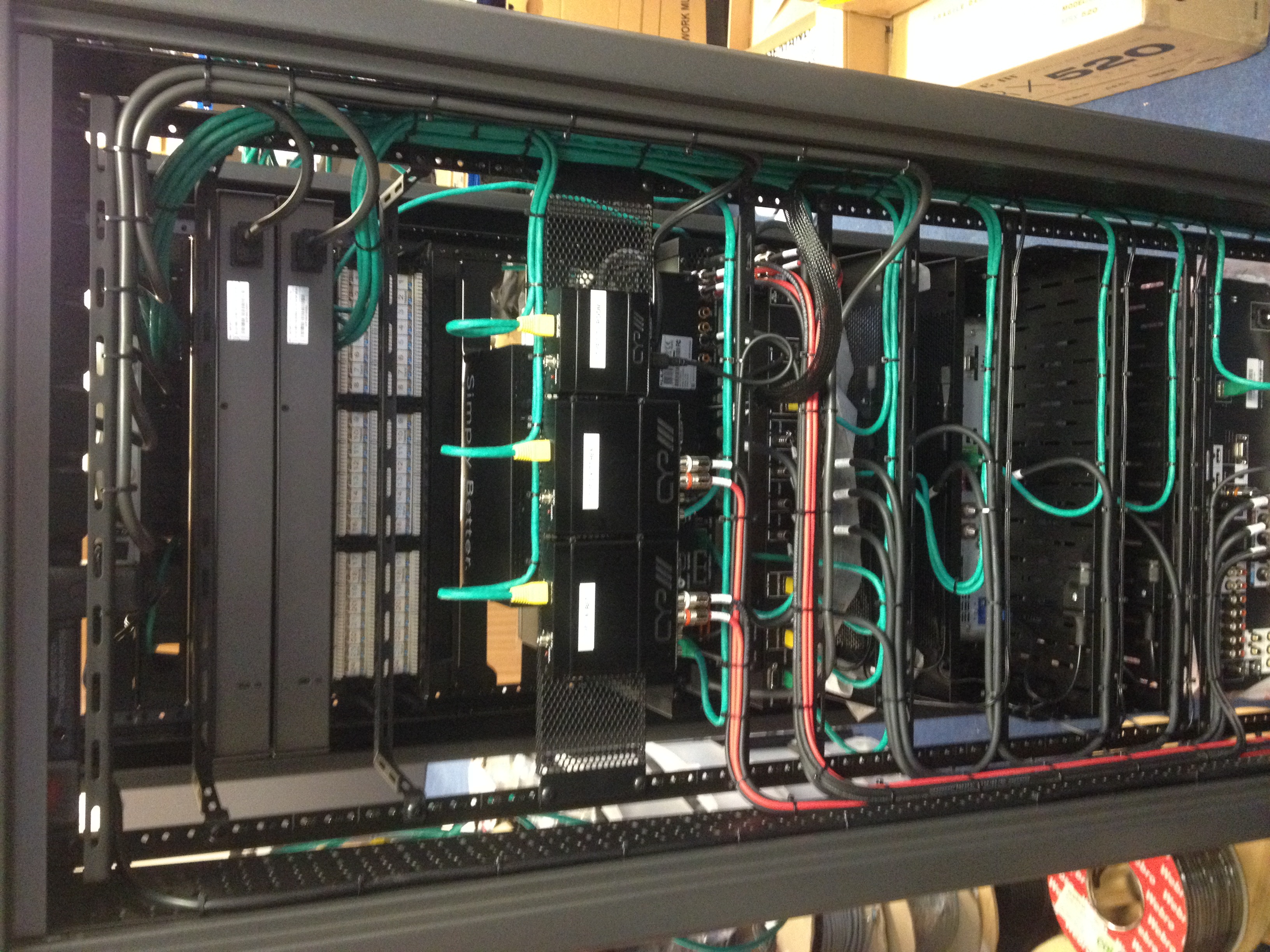 • Image of cabling, home cinema room, super yacht, luxury home, outside broadcast truck, fibre optic equipment or cabling.