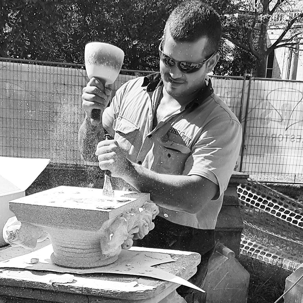 Looking for something like sindy sinn range, a skeleton stonemason with round mallet and wide chisel shaping a rectangular block of stone. In the front of the block will be my DIAMACH text which i can supply format of.