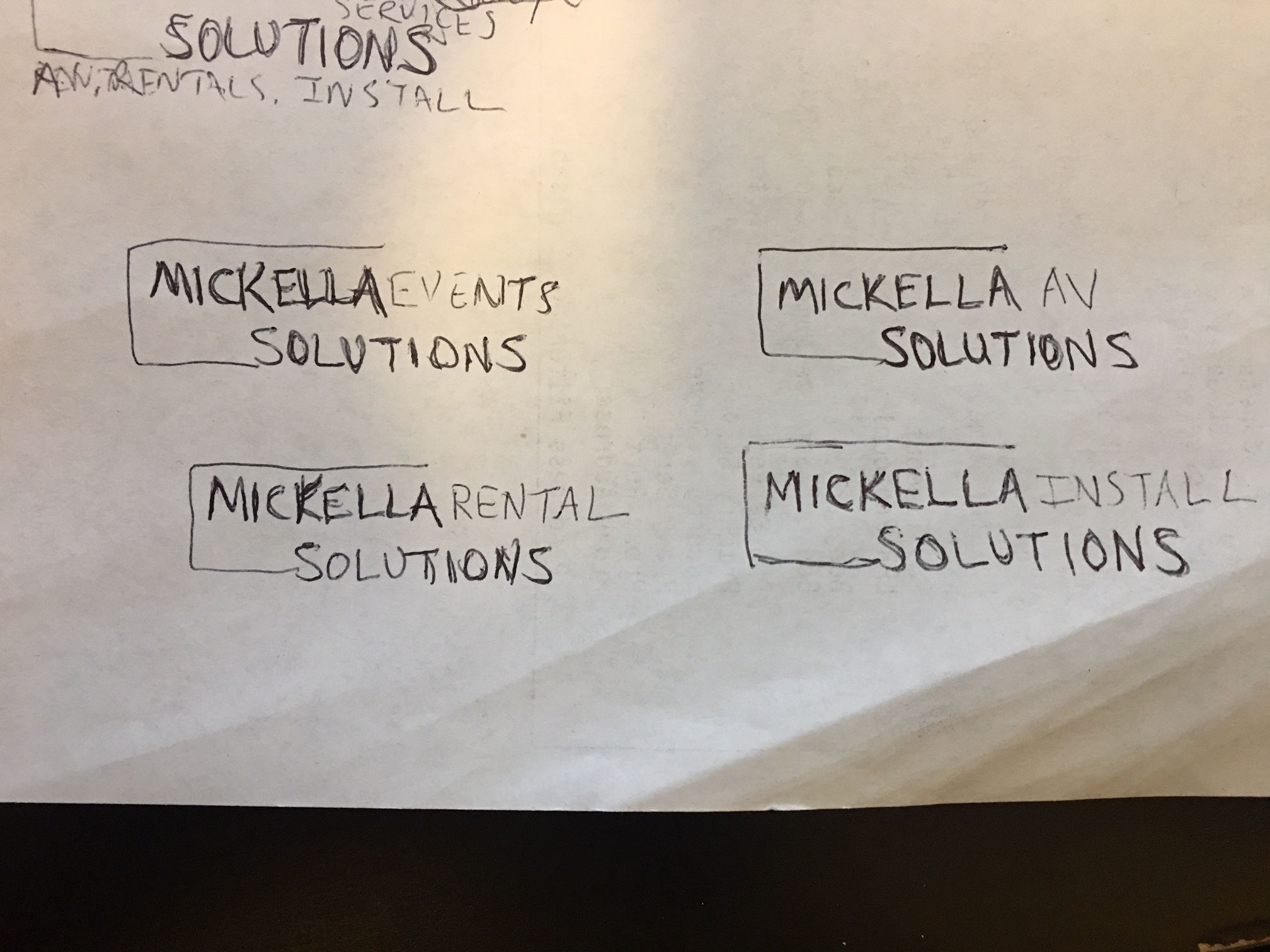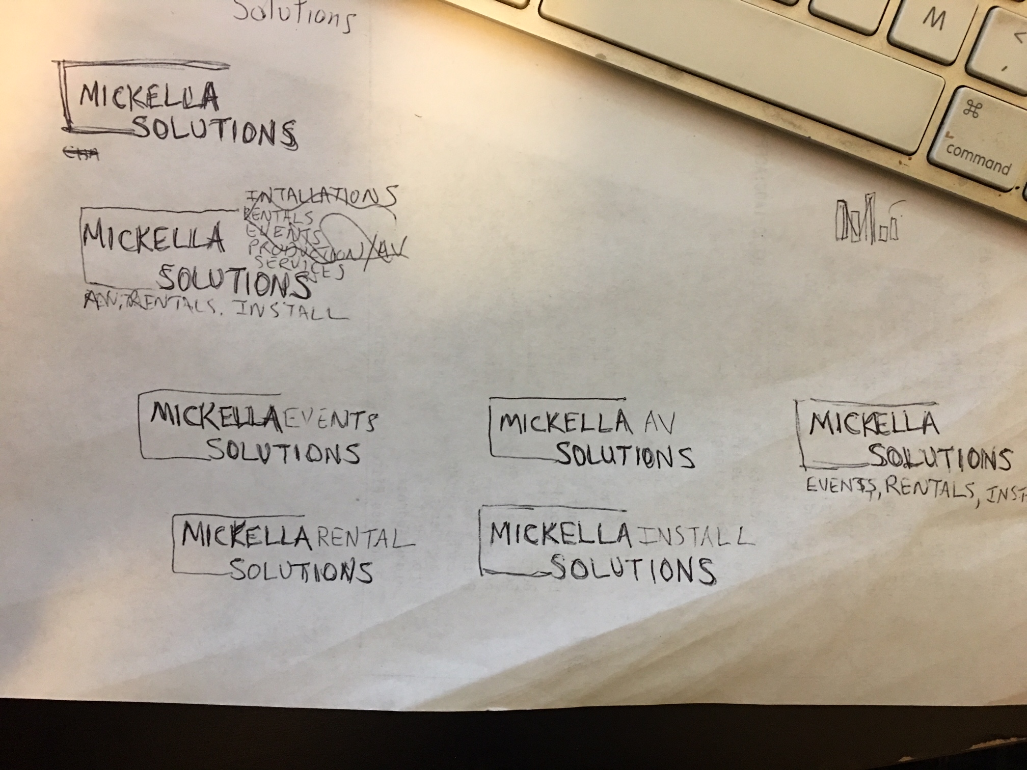 Seeking a new logo for Mickella Solutions Inc. A NYC-based company providing event technology and audio visual services to private clients and businesses. Services range from av production services ( providing audio, lights, video, LED walls, etc), rentals, and design and install services for facilities.The new logo will be placed on the web, business cards and letterheads. The design must be clean, corporate and communicate stability and longevity. The colors of interest are red, black, gray, white. It should be primarily driven by clean text of the company name. Emblem is not necessary, but will be given consideration if it communicates the same as the logo. Example logos will be psav.com, maavs.com, and ver.com. See logo design sketch attached below. Possibility to vary logo's focus depending on the service area communicating with client with the additional of additional text. For example, the logo would say Mickella Events Solutions, or Mickella Rental Solutions, etc. Nevetheless, the primary logo is Mickella Solutions - Events, Rentals, Installs