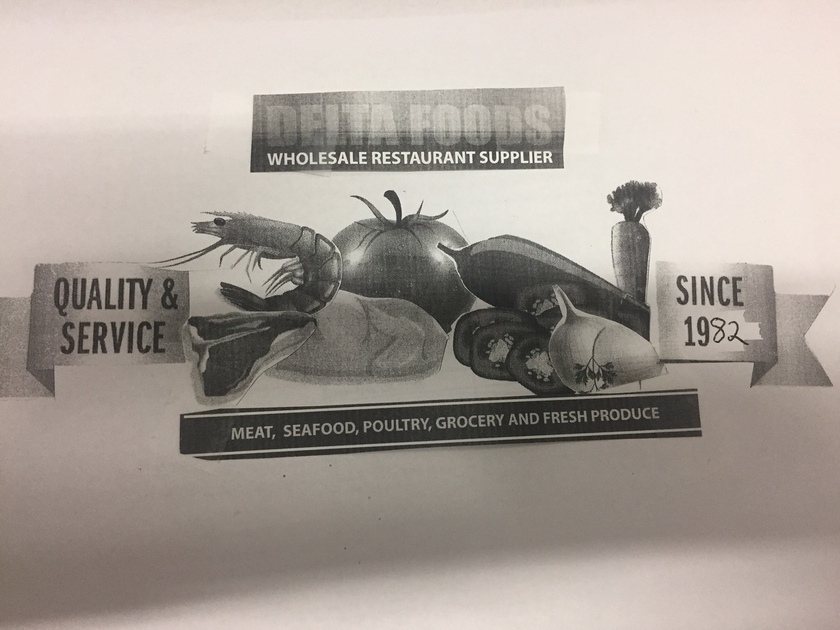 I would like a design for store frontage sign. Please see attach design layout and bright colors I like. I like the outline of the blue of each food item. Company name is Delta Foods. I would like the words " Wholesale Restaurant Supplier" underneath our company's name. I would like "chuyên bán thịt, hải sản, hải sản, gia cầm và các sản phẩm tươi" below "Meat, Seafood, Poultry, Grocery and Fresh Produce". I really lik ethe General Produce colors.