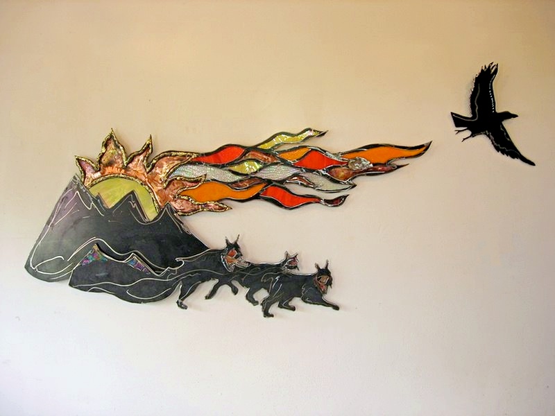 - Raven or crow interacting with the sun, or a symbolic representation of sunshine must be incorporated in some way - this could even be a lack of light or sunshine so the raven/crow is all you see.