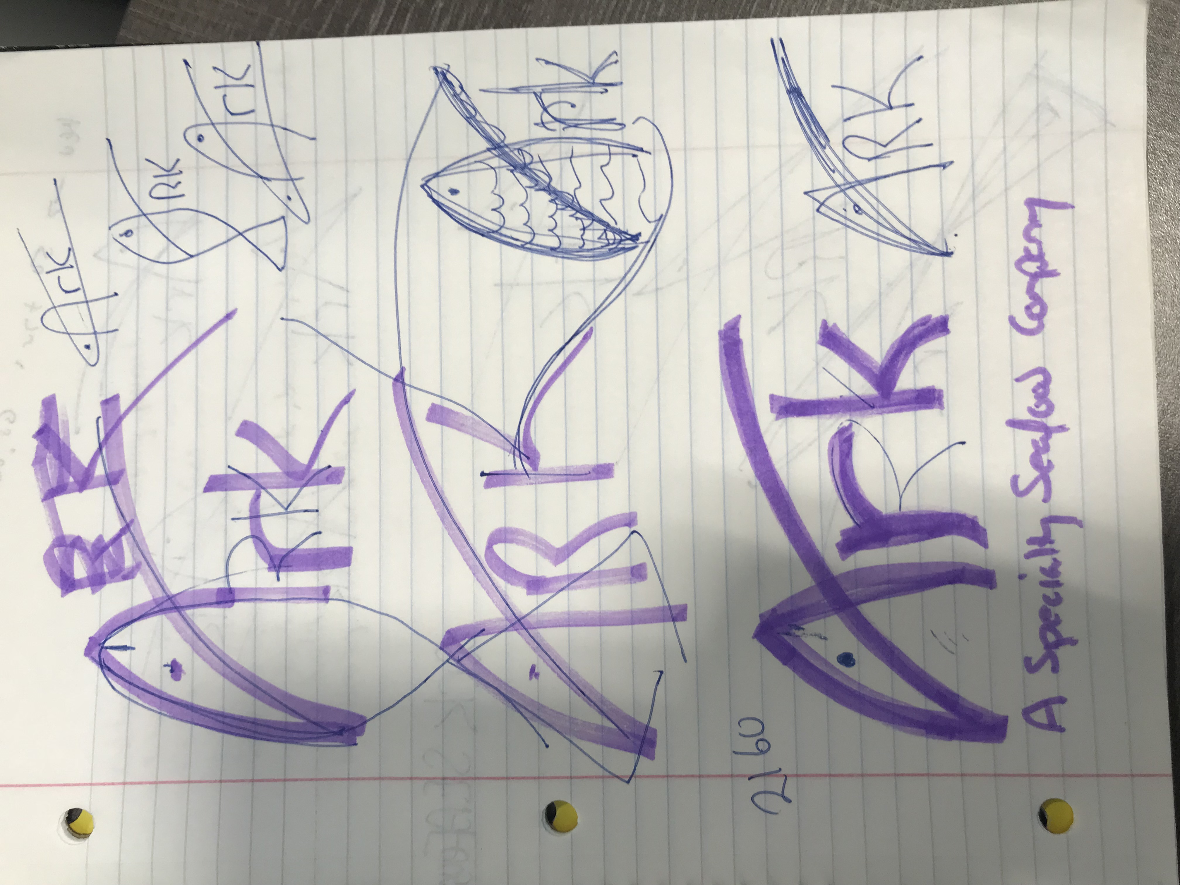 - - The words ARK and Seafood and a graphic that lets you know we are in the fish business.
