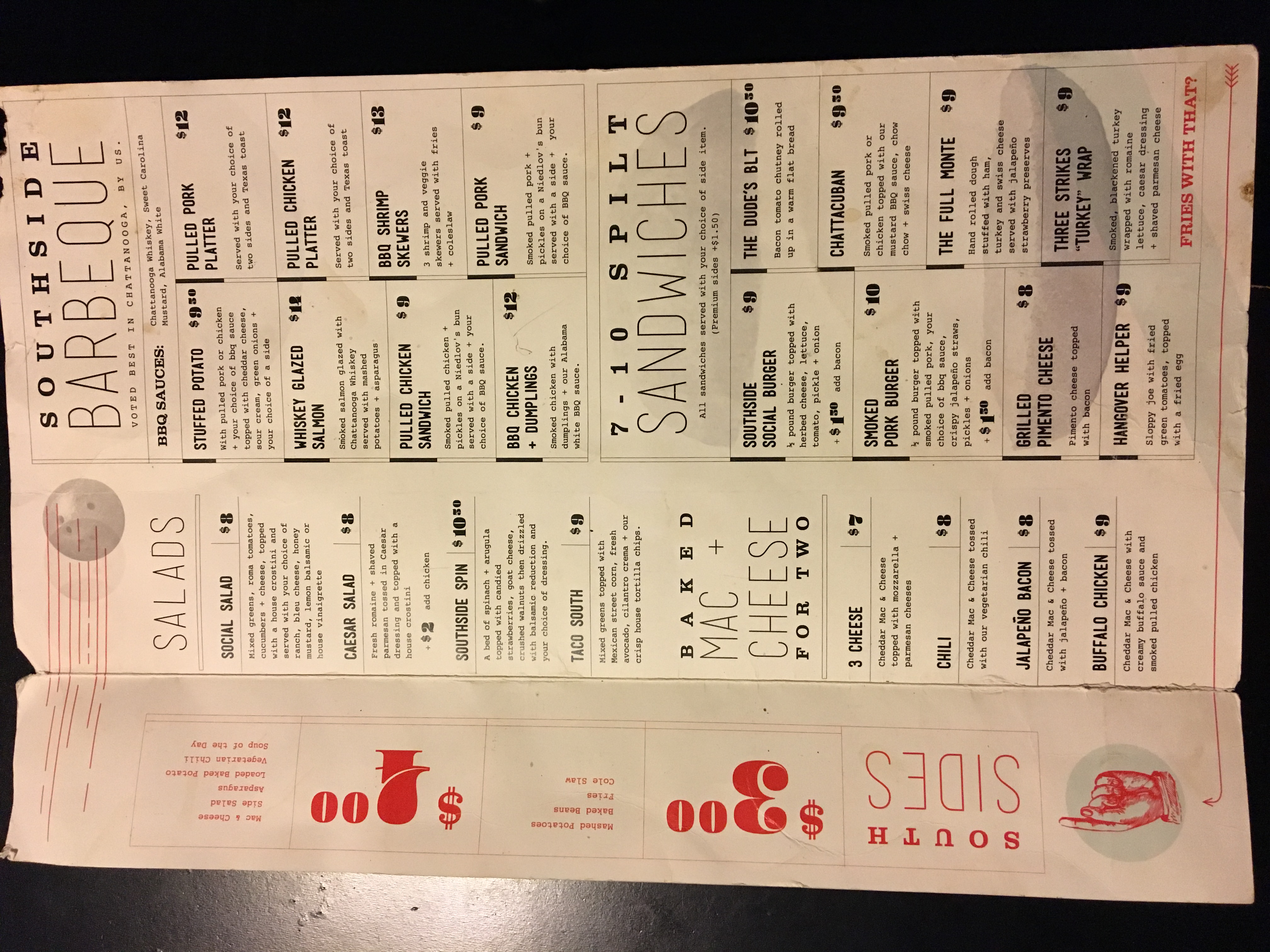 Food menu for Southside Social LLC