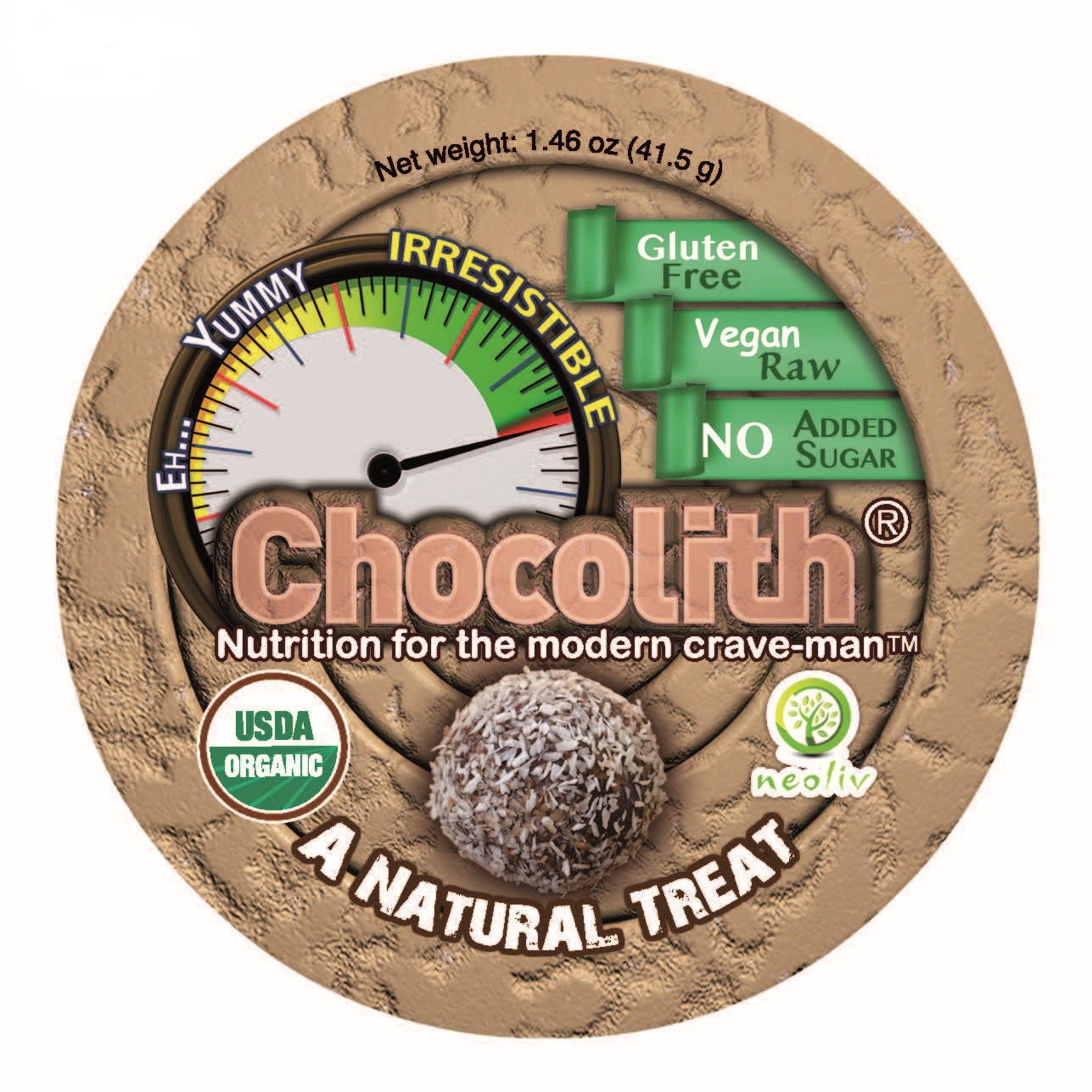 We need a creative e-commerce website in which all features--buttons, background, etc.--convey our message: We sell delicious, nutritious snacks and desserts that most closely comply with the paleo diet guidelines. Our first product is Chocolith®--raw, vegan, paleo chocolate balls that are made of dates, coconut, and cocoa. Our products are organic, raw, irresistible and nutritious. We have several versions of Chocolith® in development, as well as mousse, ice cream, and crackers. Our mission is to purvey basic healthy foods. Our motto is, "Nutrition for the Modern Crave-Man(tm)."
