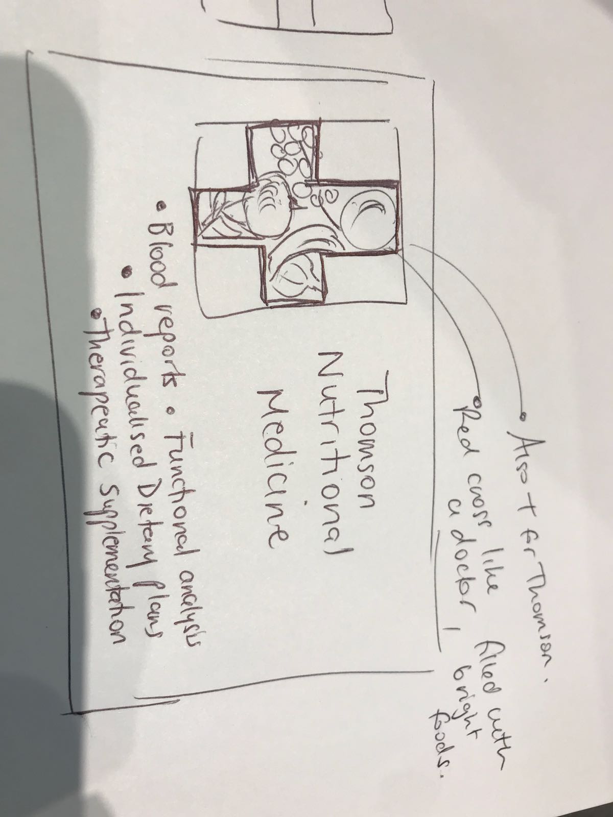 In essence the company will be health fucus so could have bright colored food/vegetables and potentially a cross reference for medicine