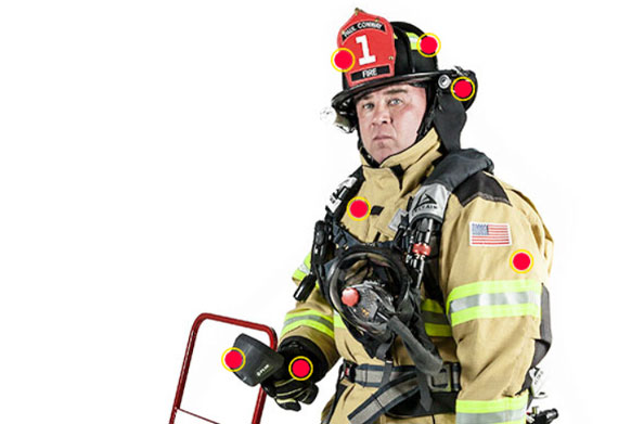 2. The outline of the Firefighter Emblem enclosing the whole photo / scene.