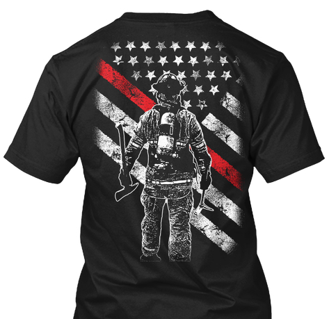 Back design should include a Firefighter and Medical Helicopter. The helicopter must be and EC-145 style, also now known as H145 style, made by Airbus helicopters. The helicopter should be Flying / Hovering while the Firefighter is on the ground (possibly walking toward the helicopter with his back showing in the photo - Note:Firefighters don't usually wear oxygen tanks inside helicopter landing zones, but they could if necessary).