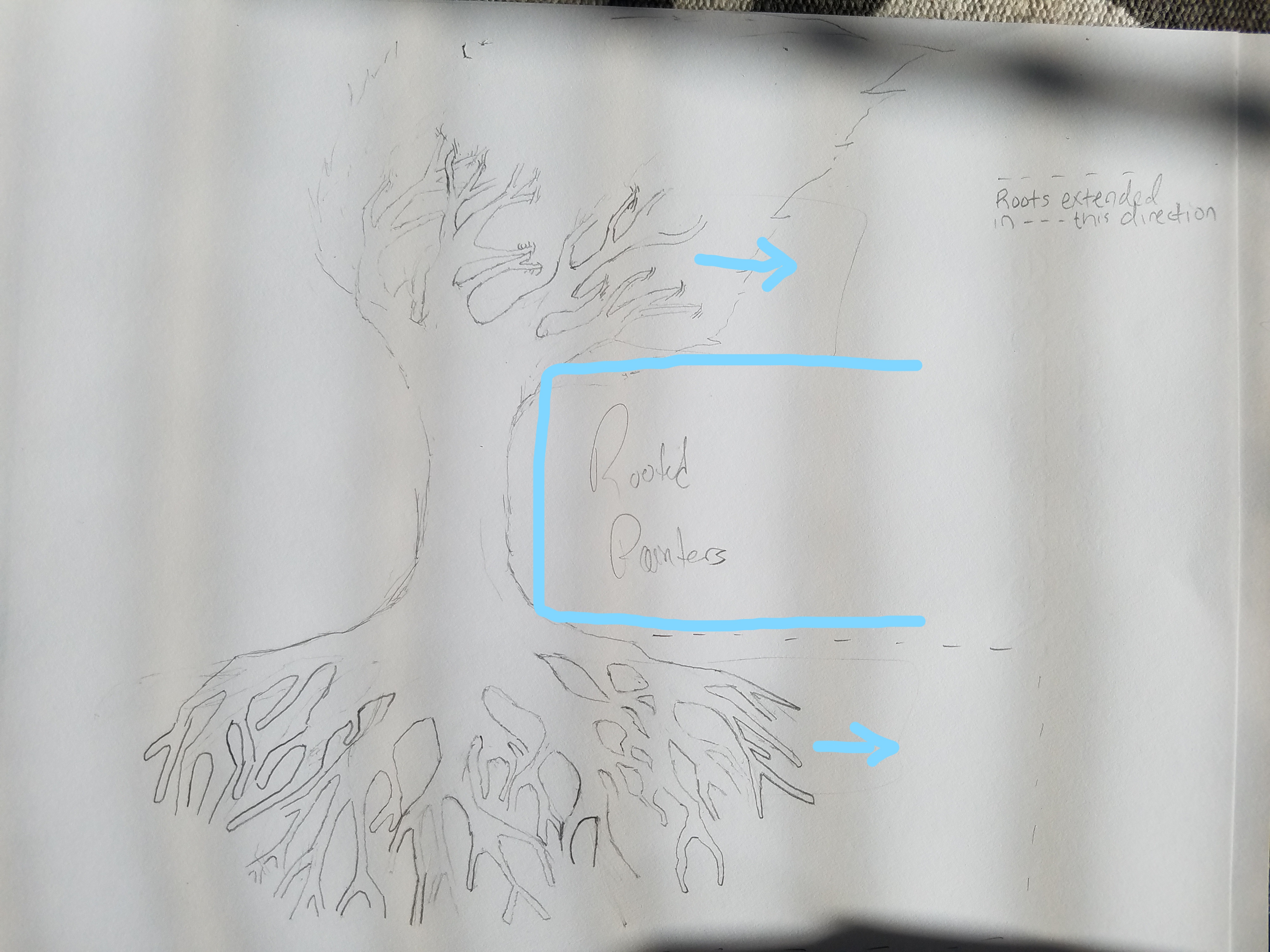 - emphasis on rooted. we want this tree to look established... compassing the words. roots below words and branches above them