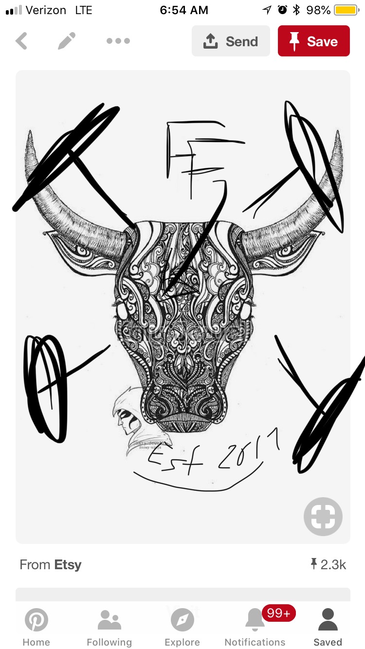 I need a design for T-shirt’s that could possibly become the company logo for FarmFit. An idea that came to mind was the outline of a bulls face with horns with an X crossed behind it. Similar to a quadrant logo with the bulls face center of the X. The company name could be incorporated maybe in the form of a ranch brand like “FF” as well as the est. date of 2017. I want it clean and simple. If color is used, preferably soft neutral colors. Possibly a little rugged look to it. Or even a southwest chic. No cartoon images or muscle building bulls. The barbells should be less prominent making the bull skull and brand the main piece of the design. Less masculine look with the ability to add detail for a female design