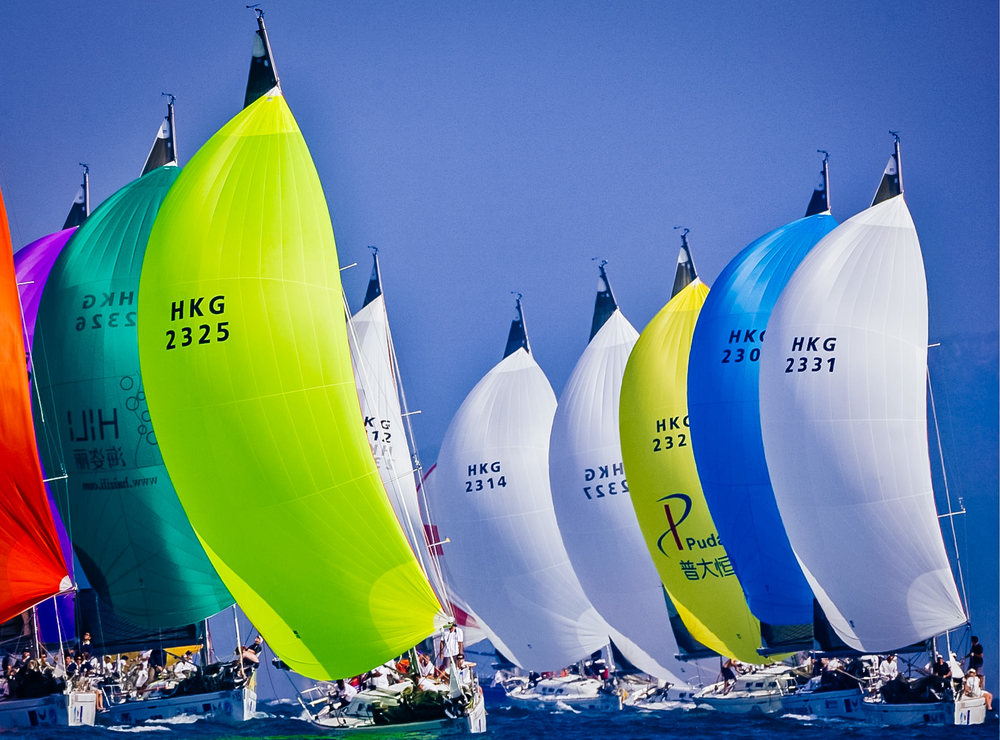 - A spinnaker sail (or lines/shapes to indicate spinnaker sails)