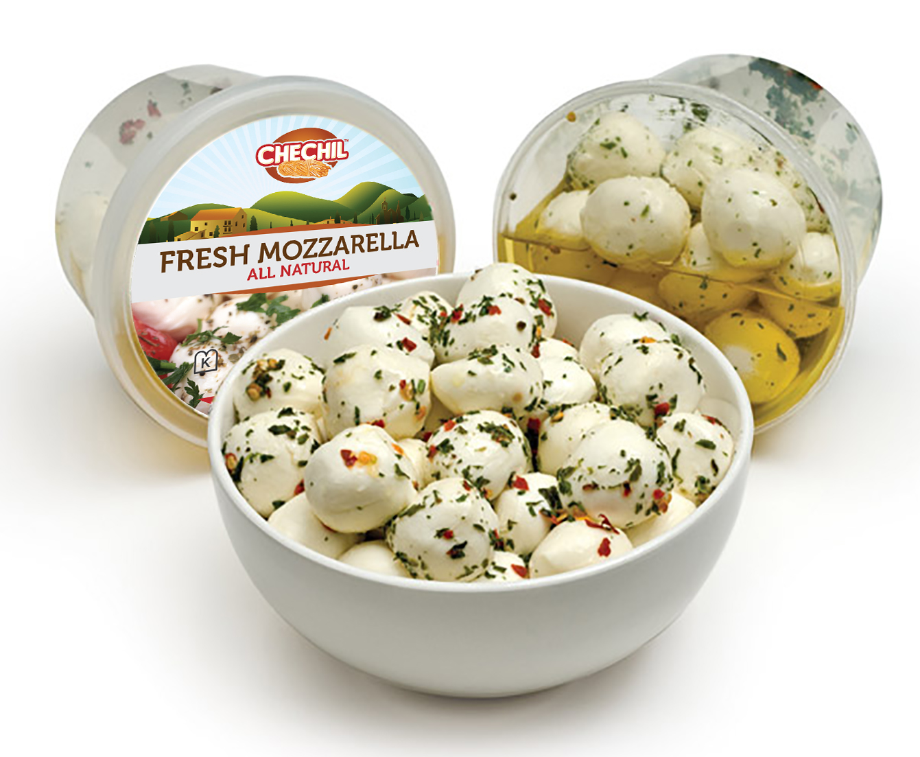 5. DESIGN (PRODUCT PICTURE): I would like you to create a product drawing of many mozzarella balls with Sun-Dried Tomato and Parsley in it below the product description. Make sure it is attractive and pops-out on the label. Look at the "product example" to get an idea but please make sure you don't make it exactly the same. This is important as it needs to be arranged in such a way to not be too similar. Look at the file "inspiration 4" to see how it looks like.