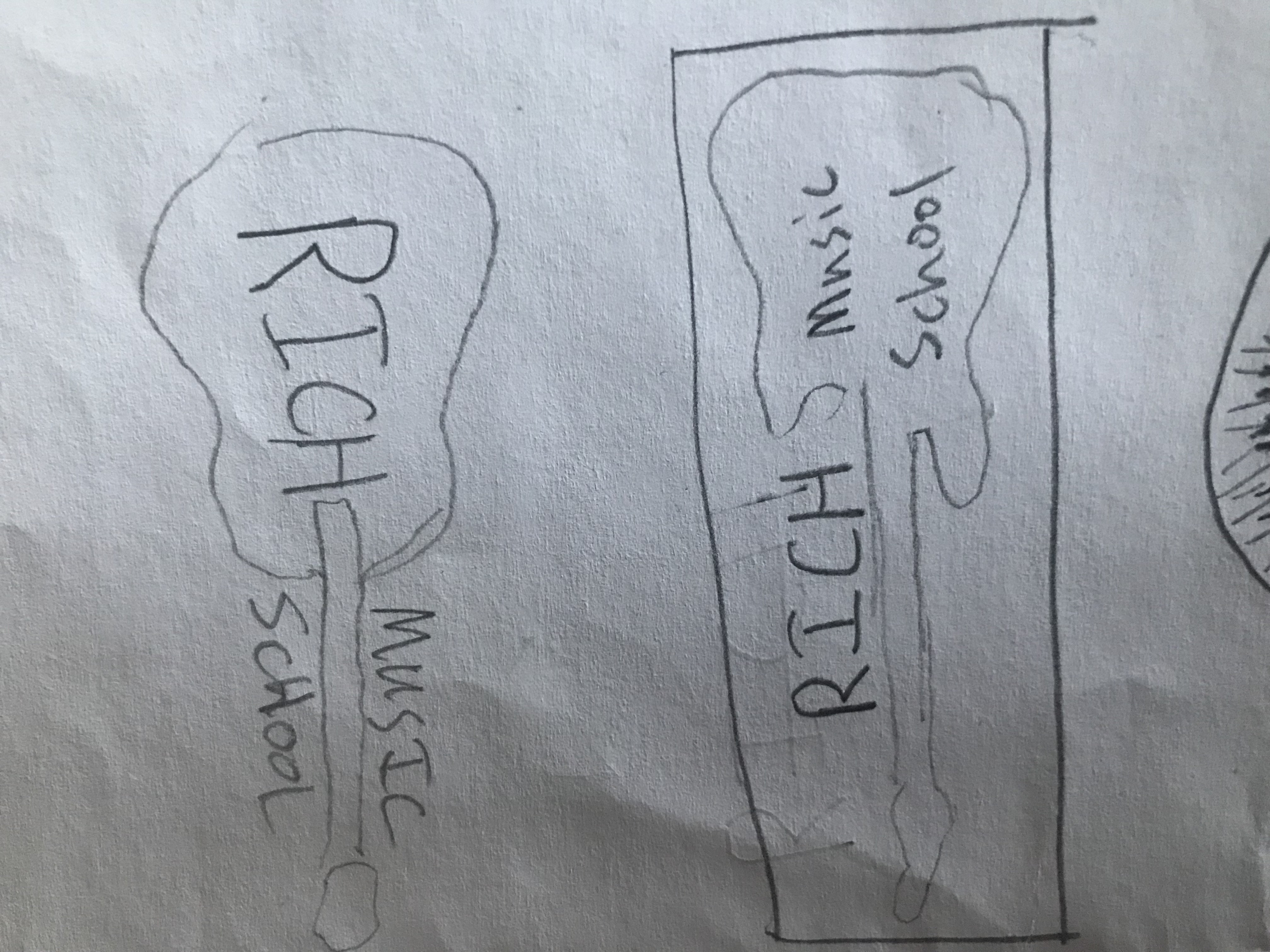 I need a logo for my music school called "Rich Music School" in North Carolina. We teach music lessons for every instrument, as well as group lessons like rock band, but our main instruments are piano, guitar, voice, drums. We try to have a very hip, sleek, and modern feel, while still feeling fun for kids since the biggest part of our market is 5-13 yr olds. We still want to look and feel cool to high school and adult audiences. We are a performance based school so any graphics showing instruments or silhouettes of instruments would be great. I'm not sure if I want it to be colored or black and white. I attached a rough sketch of a design I like a lot, but I am not at all tied to that idea. I am using the following colors for my website and school, hopefully you can use some of these colors! 56B1BF, 7D7F76, 42677C, B70505, 5A7F82. Thank you!